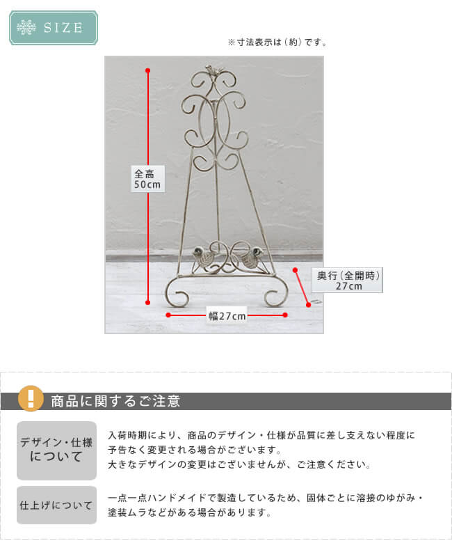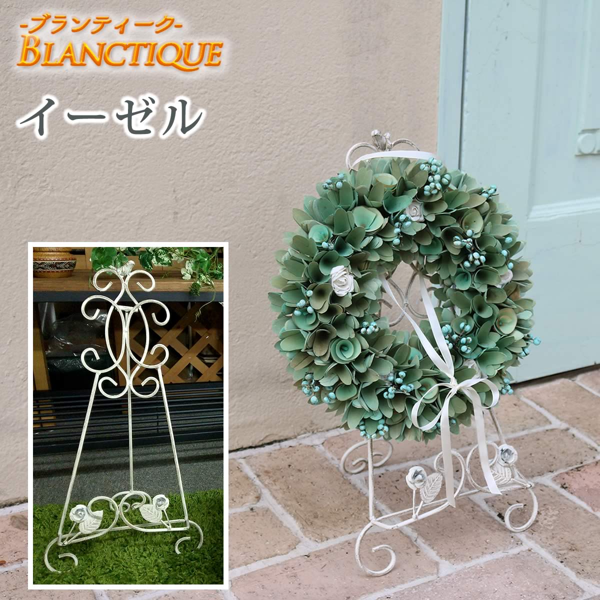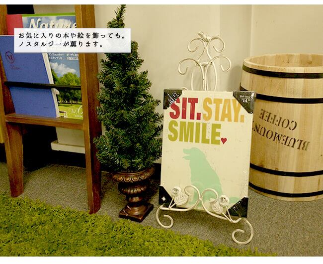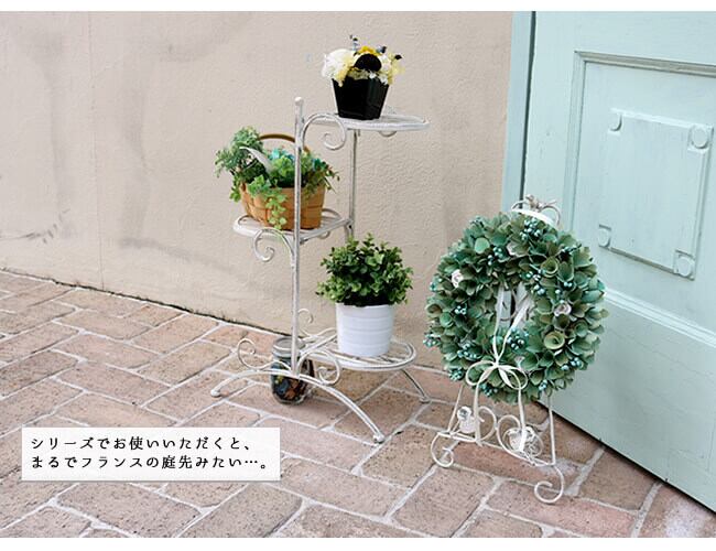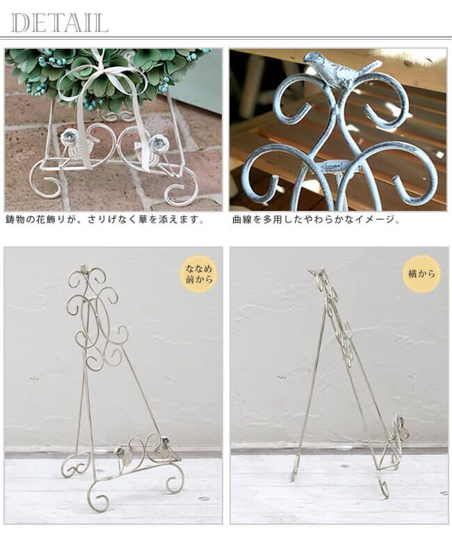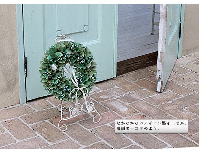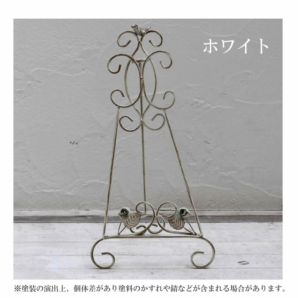 なじみやすい清潔感のあるオフホワイトと、気品あるシャビー感が絶妙にミックスされたホワイトアイアンイーゼルです。