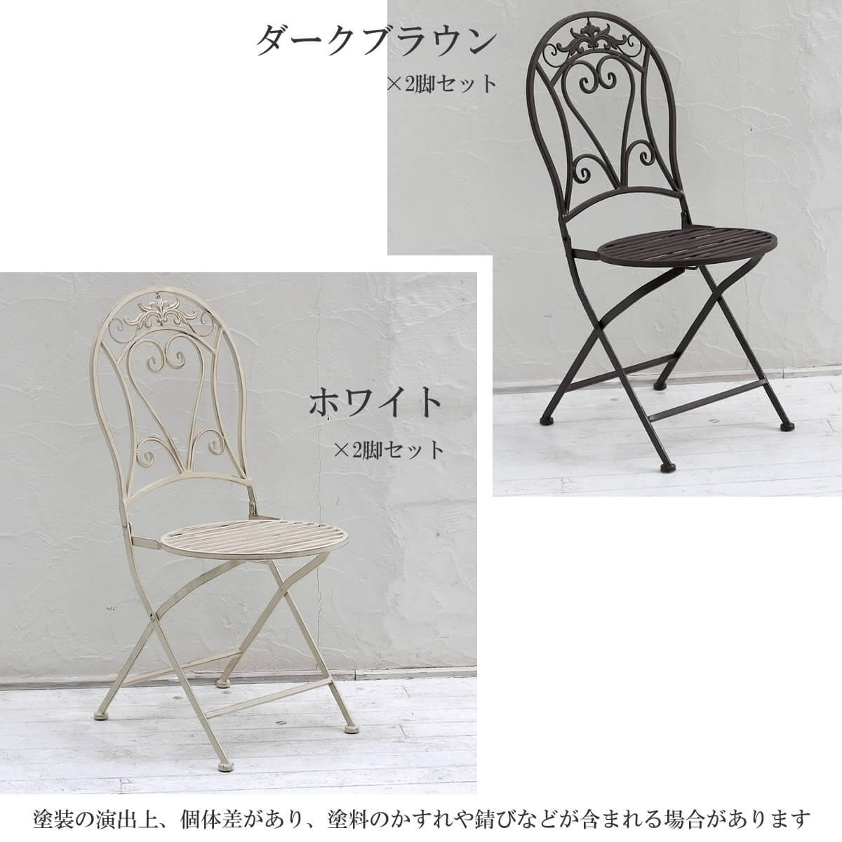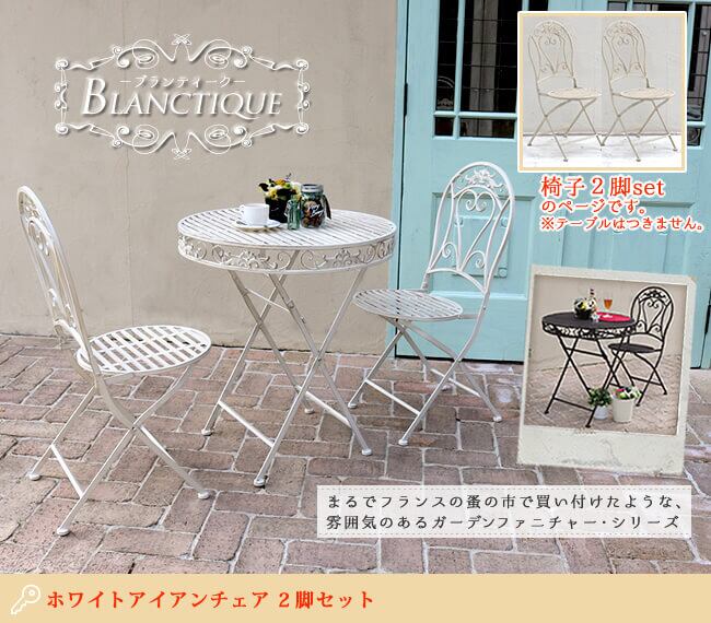 なじみやすく気品あるシャビー感が絶妙にミックスされ、お庭やベランダ、バルコニーの雰囲気を味わい深いものにしてくれるチェア2脚セットです。