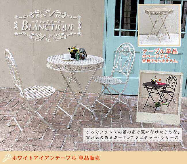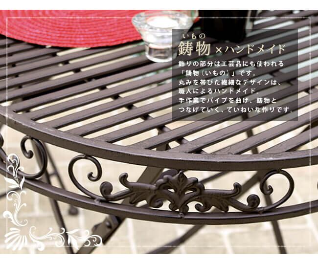 なじみやすいく気品あるシャビー感が絶妙にミックスされ、お庭やベランダ、バルコニーの雰囲気を味わい深いものにしてくれるアイアンテーブルです。