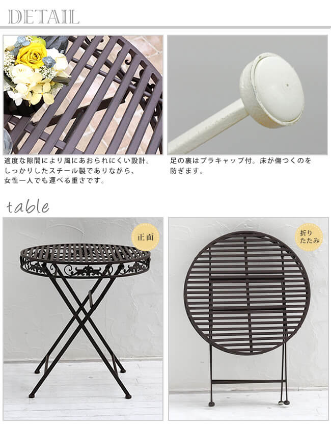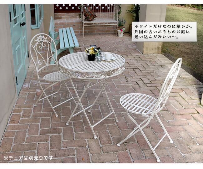 ガーデンテーブル 1台 単品 おすすめ アイアンテーブル おしゃれ ホワイト 白 シャビーホワイト レトロ アンティーク調 アンティーク加工 ビンテージテイスト ベランダ バルコニー テラス ガーデン 庭のテーブル 庭の机 テーブル DIY 工具 庭 ガーデニング ガーデンファニチャー ダークブラウン 北欧 モダン ヴィンテージ風 庭園 園芸