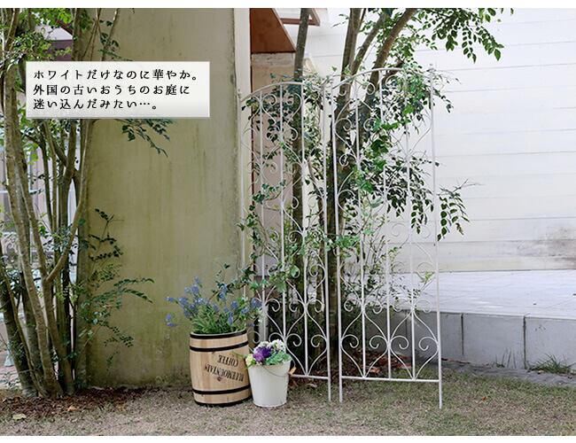 アイアントレリス 4枚セット シャビー ホワイト 白 42cm幅 庭 ガーデニング 園芸 花壇 アイアンフェンス ガーデンフェンス 庭のフェンス 植物誘引 おすすめ おしゃれ 北欧 幅42cm 奥行2.5cm 高さ147cm ベランダ バルコニー テラス トレリス フェンス 目隠し 境界線 4枚組