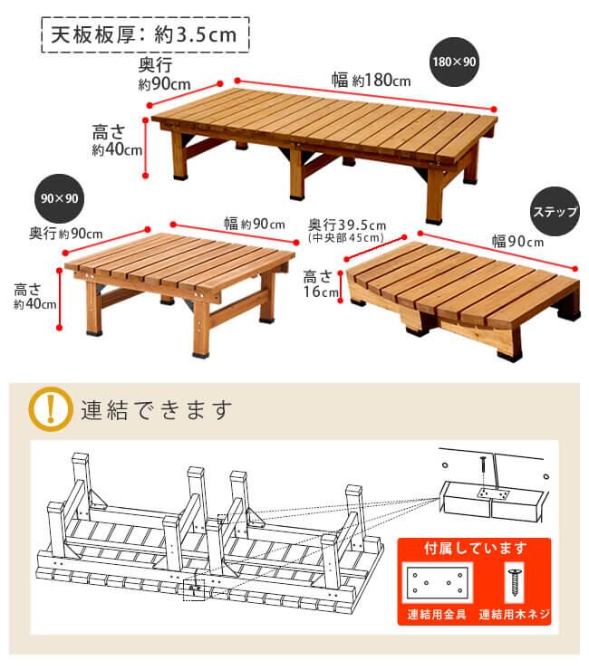 ・デッキ縁台(幅90cm):幅90cm、奥行90cm、高さ40cm
