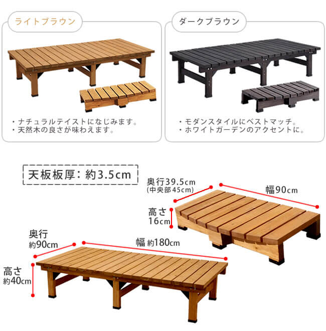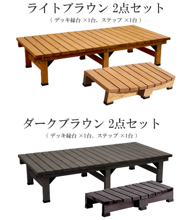 デッキ縁台 ステップ 2点セット 縁台デッキ 90cm幅 180cm幅 長方形 縁台ベンチ ライトブラウン ダークブラウン ガーデンファニチャー 踏み台 昇降台 デッキセット ステップセット ベランダ バルコニー テラス おすすめ おしゃれ 庭 ウッドデッキ 木製デッキ 木製ベンチ 庭のベンチ 木製縁台 縁台 デッキ DIY 工具 連結 一軒家 庭のデッキ