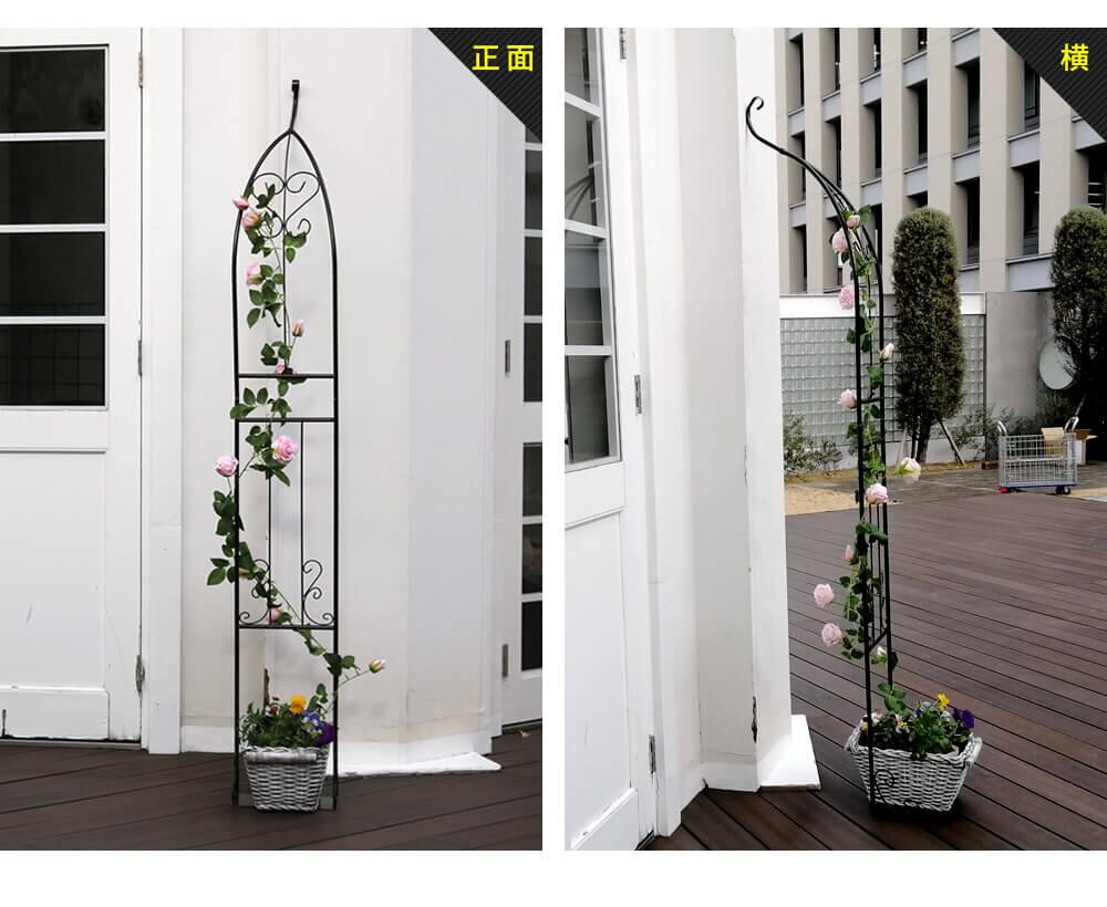 台座は設置場所にあわせて、内側、外側どちらにも向けることができる仕様で、フェンスやトレリスとはまた違った、華やかさがあります。