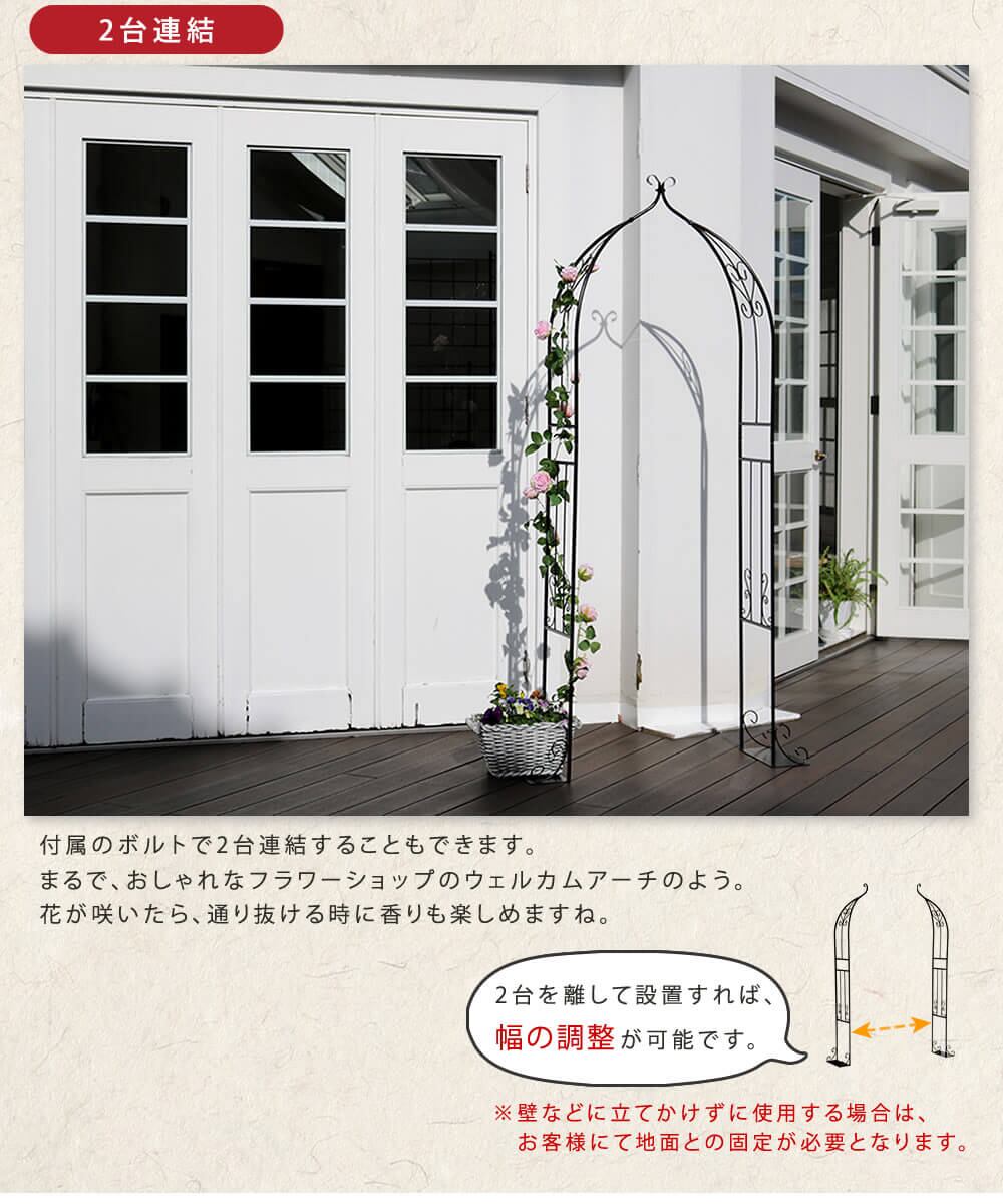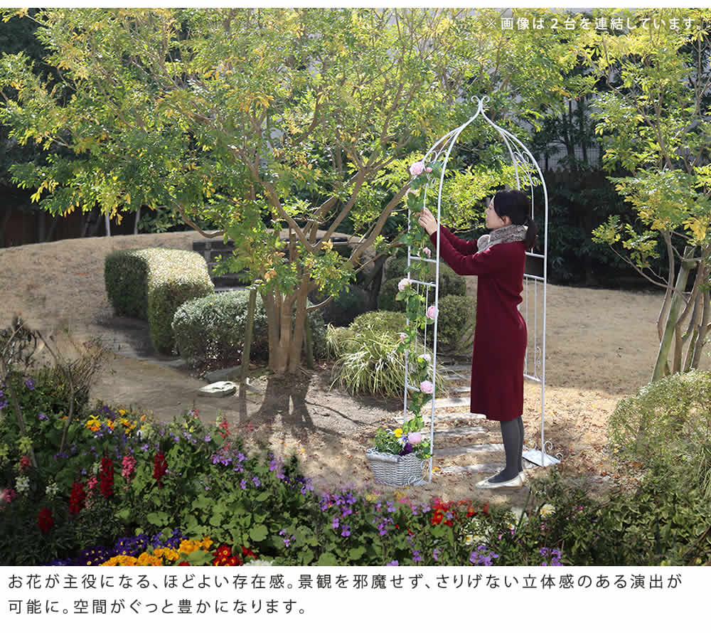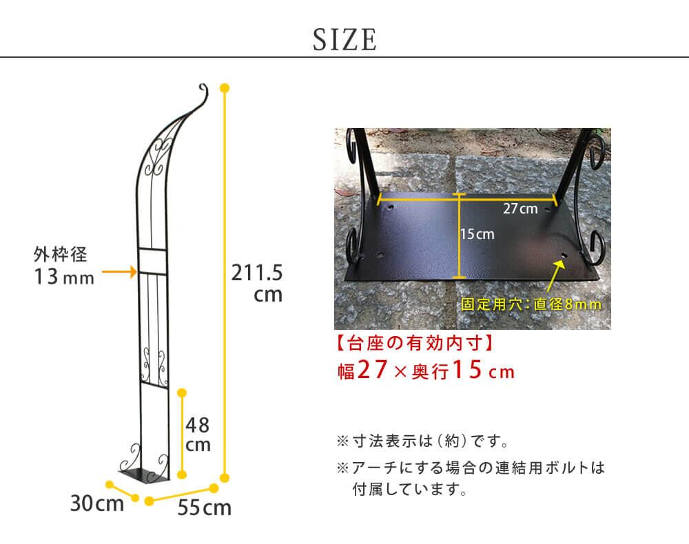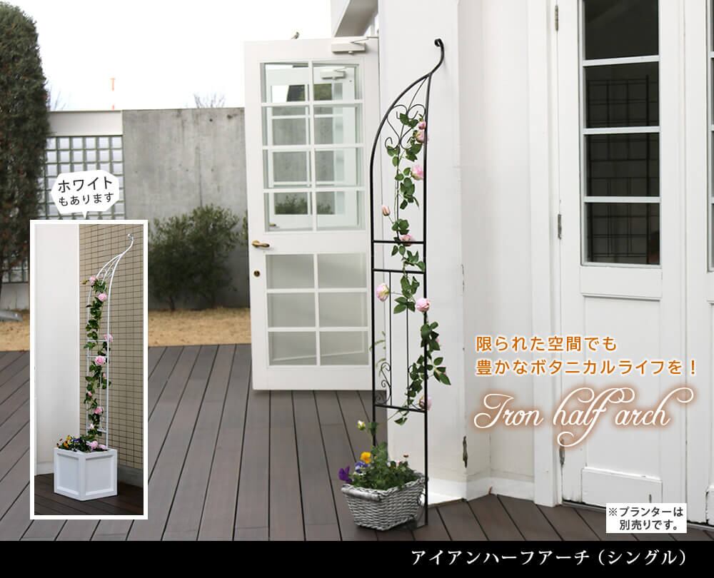 ハーフアーチ ガーデンアーチ 55cm幅 1台 単品 ダークブロンズ ホワイト 白 庭 ガーデニング バラアーチ 幅55cm 奥行30cm 高さ211.5cm おすすめ おしゃれ 北欧 ベランダ バルコニー テラス 庭園 園芸 春 夏 秋 冬 プランター台付きアイアンアーチ 植物誘引 目隠し 境界線