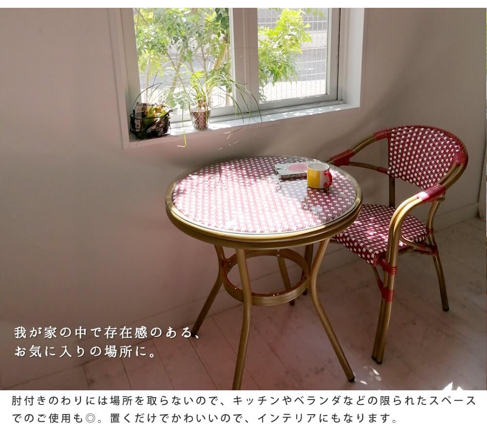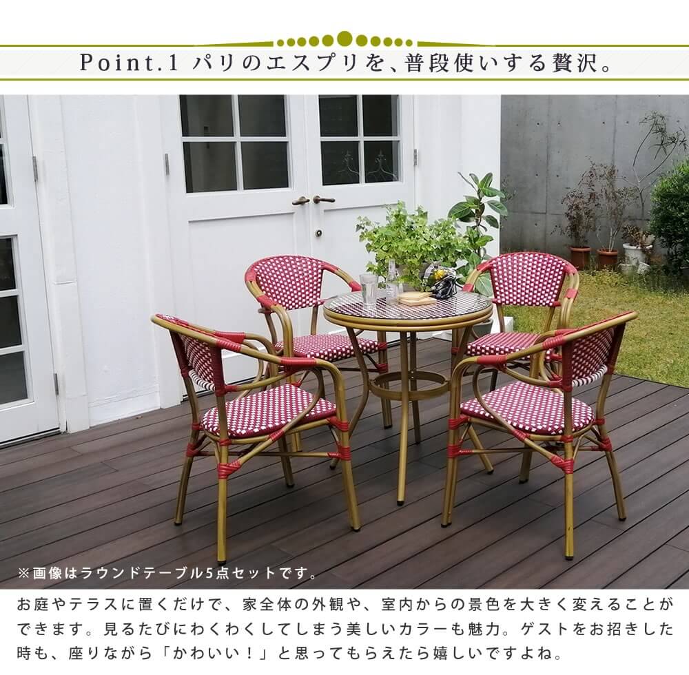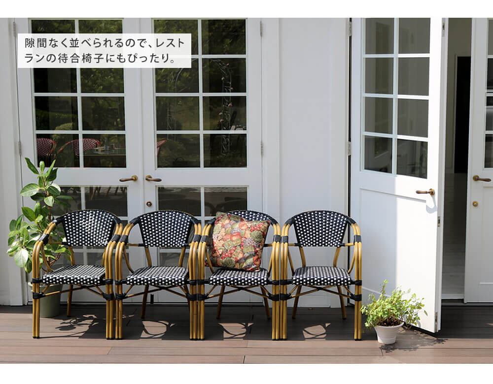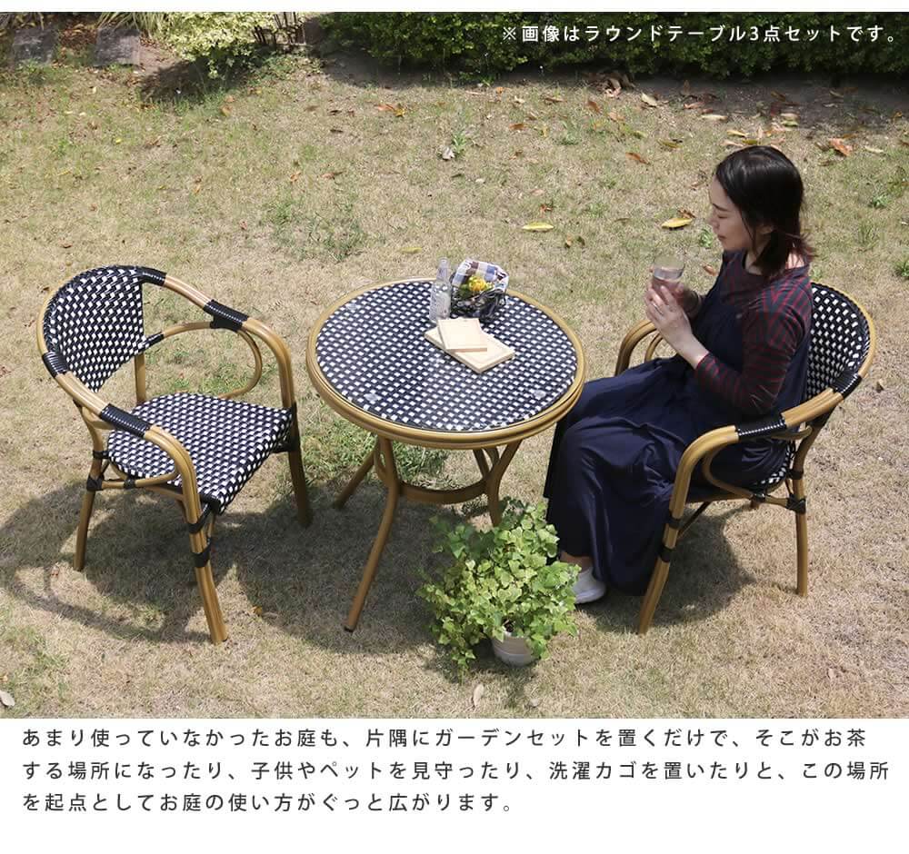 テラス席に置きっぱなしでも華やかさを保つことができる高い機能性を備えたガーデンチェア2脚セットです。
