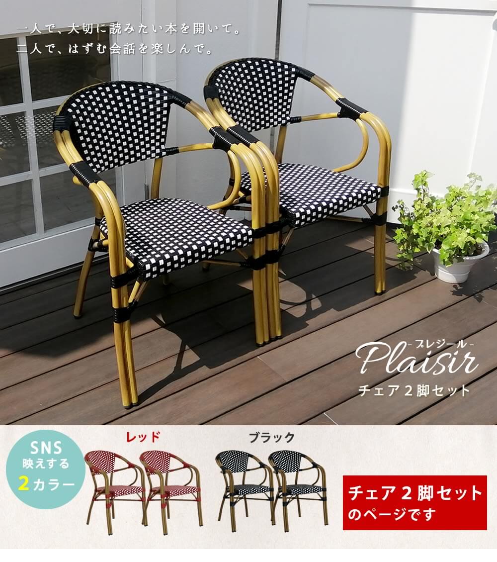 ガーデンチェア 2脚セット 2脚組 同色2脚セット 庭の椅子 おしゃれ 北欧 ガーデニング 庭 ブラック レッド 黒 赤 オープンカフェ風 オープンテラス カフェ風 テラス バルコニー ベランダ 庭のチェア オープンテラスチェア ガーデンチェアー おすすめ テラス オープンテラス 水はけ カフェチェア ガーデンチェアー PEラタンチェア 人工ラタン 春 夏 秋 冬