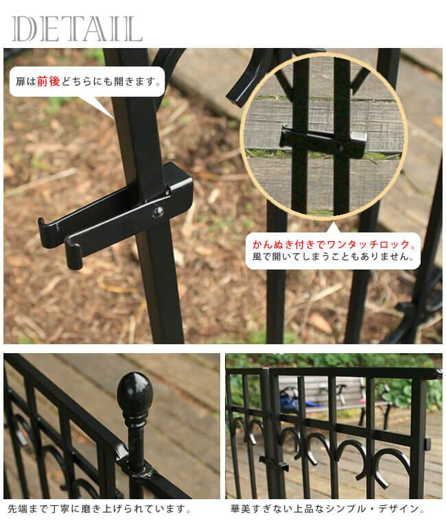 アイアンゲートセット ゲート1個 ゲート用ポスト2本 合計3点セット ブラック ホワイト 黒 白 ゲート幅91cm ガーデンフェンス用ゲートセット ポールセット フェンスのゲート おすすめ おしゃれ 北欧 庭 ガーデニング 花壇 園芸 菜園 花壇の入口 ゲートセット ガーデンゲート