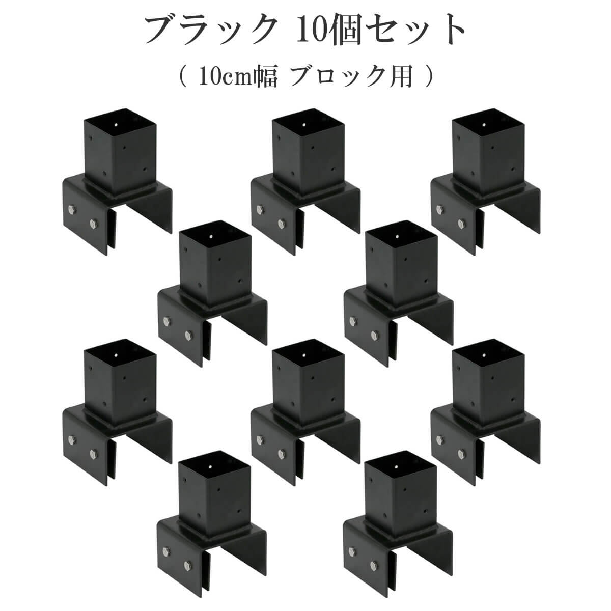 支柱固定金具 10個セット 10cm幅ブロック用 ブラック 黒 ラティス固定金具 フェンス支柱固定金具 おすすめ おしゃれ 北欧 庭 DIY ガーデニング 幅12cm 奥行13cm 高さ18cm 園芸 花壇 庭園 固定用金具 コンクリートブロック用 ガーデンフェンス用金具 フェンス固定金具 10個組