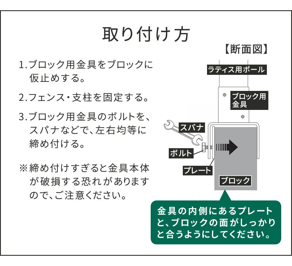 ・固定金具のみの販売です。フェンスやラティス本体等はすべて別売りです。