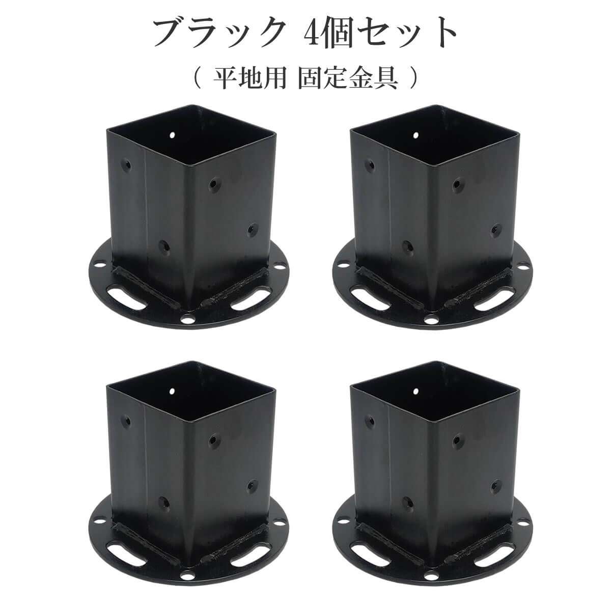 平地用支柱固定金具 4個セット ブラック 黒 平地用 固定金具 おすすめ おしゃれ ガーデンフェンス固定金具 幅14cm 奥行14cm 高さ10cm ラティス固定金具 庭 ガーデニング ベランダ バルコニー テラス 平地用金具 DIY フェンス設置用金具 ラティス設置用金具 工具 4個組