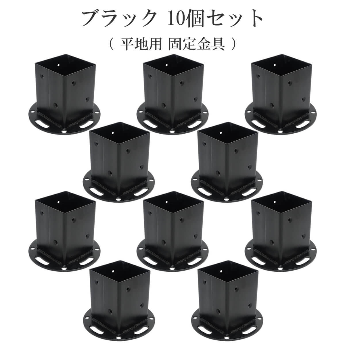 平地用支柱固定金具 10個セット ブラック 黒 平地用 固定金具 おすすめ おしゃれ ガーデンフェンス固定金具 幅14cm 奥行14cm 高さ10cm ラティス固定金具 庭 ガーデニング ベランダ バルコニー テラス 平地用金具 DIY フェンス設置用金具 ラティス設置用金具 工具 10個組