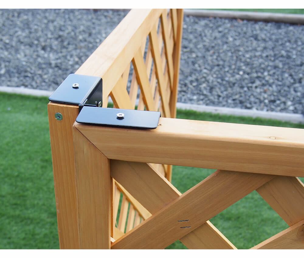 枠の厚み3.5cmのラティスやフェンス対応のコーナー連結用固定金具です。