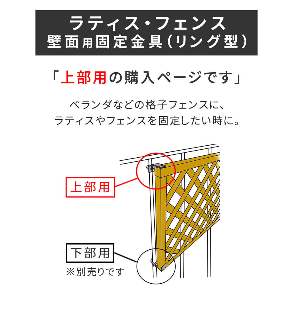 ・固定金具(壁面用リング型・上部用)のみの販売です。フェンスやラティス本体等はすべて別売りです。
