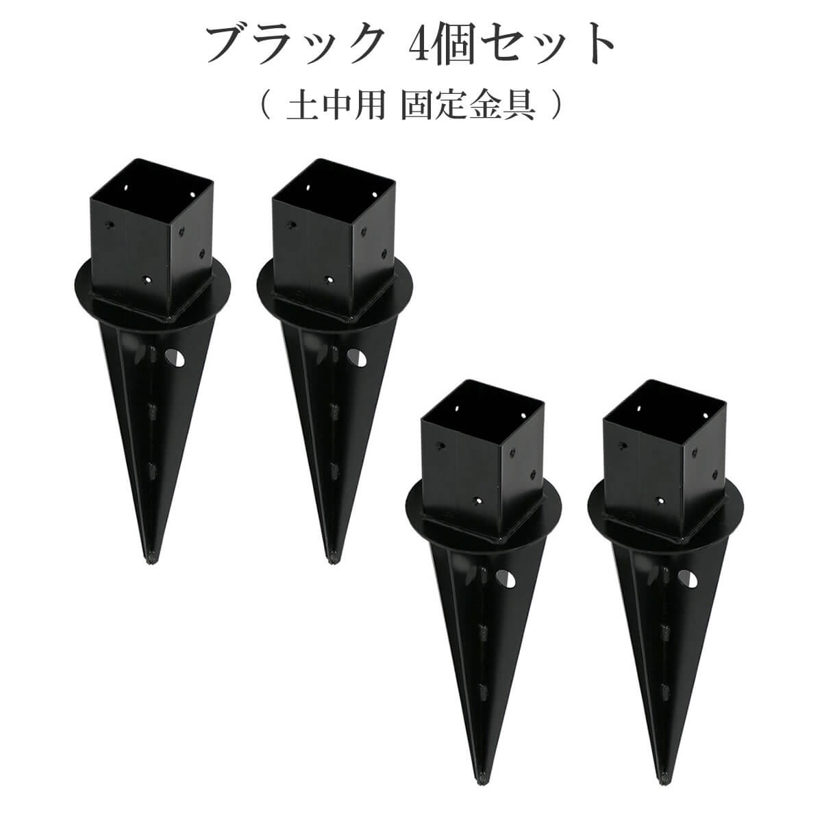土中用 支柱固定金具 4個セット ブラック 黒 土中用 固定金具 フェンス固定金具 ラティス金具 支柱用固定金具 おすすめ おしゃれ 庭 DIY ガーデニング 幅14cm 奥行14cm 高さ46cm フェンス設置用金具 ガーデンフェンス固定金具 ラティス固定金具 土中用金具 工具 4個組