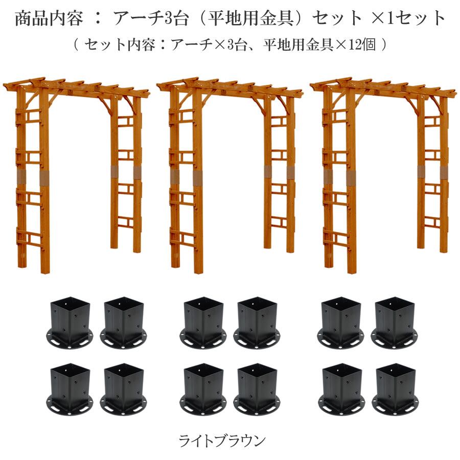 ガーデンアーチセット 3台セット 3台組セット 190.5cm幅 パーゴラアーチセット 平地用固定金具セット ライトブラウン 茶色 木製アーチ ウッドアーチ ガーデンアーチ パーゴラアーチ 固定金具 平地用固定金具 バラアーチ 葡萄棚 藤棚 薔薇 ローズアーチ 園芸用品 DIY ガーデニング アーチ 連結可能 アーチ モッコウバラ ハゴロモジャスミン つるバラ クレマチス トケイソウ ハニーサックル キングサリ フジ棚 ぶどう棚 サイドラティス カリマ フラワーアーチ 金具セット ブラックベリー ラズベリー センニンソウ アサガオ スイカズラ ツルアジサイ ツルニチニチソウ ニシキテイカ ミヤママタタビ アケビ ゴーヤ きゅうり ヘンリーヅタ ガゼボ