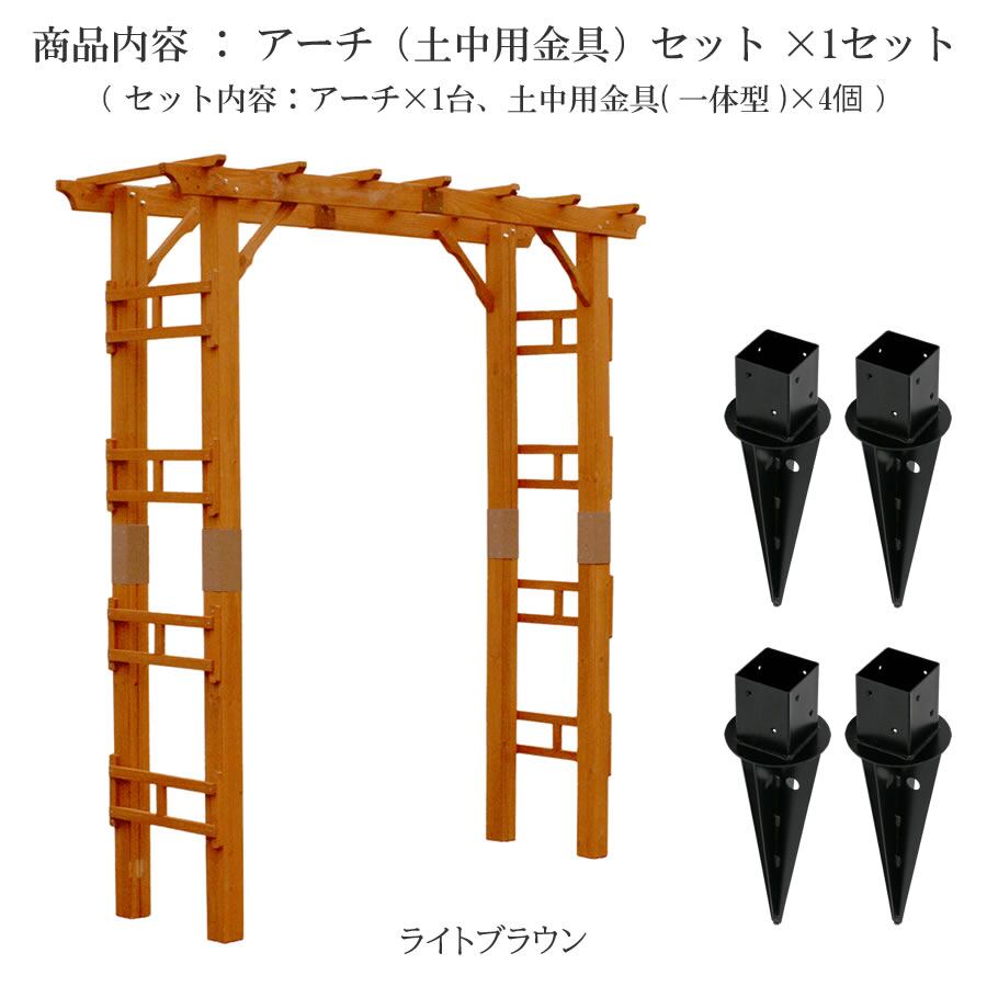 ガーデンアーチセット 土中金具セット 190.5cm幅 パーゴラアーチセット 土中用固定金具セット ライトブラウン 茶色 木製アーチ ウッドアーチ ガーデンアーチ パーゴラアーチ 固定金具 土中用固定金具 バラアーチ 葡萄棚 藤棚 薔薇 ローズアーチ 園芸用品 DIY ガーデニング アーチ 連結可能 アーチ モッコウバラ ハゴロモジャスミン つるバラ クレマチス トケイソウ ハニーサックル キングサリ フジ棚 ぶどう棚 サイドラティス カリマ フラワーアーチ 金具セット ブラックベリー ラズベリー センニンソウ アサガオ スイカズラ ツルアジサイ ツルニチニチソウ アケビ ゴーヤ きゅうり ガゼボ