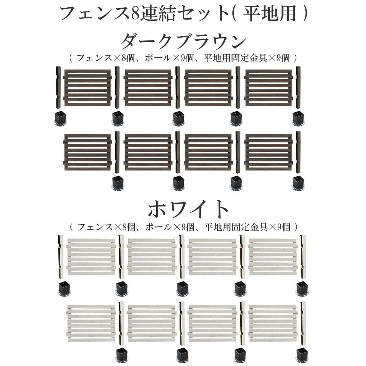 (※セット内容:フェンス×8個、ポール×9個、平地用金具×9個)