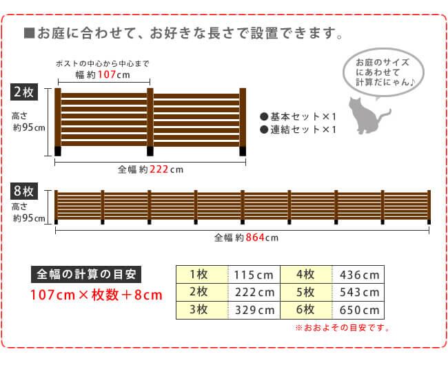・フェンス(1枚あたり):幅107cm、奥行2.7cm、高さ78cm
