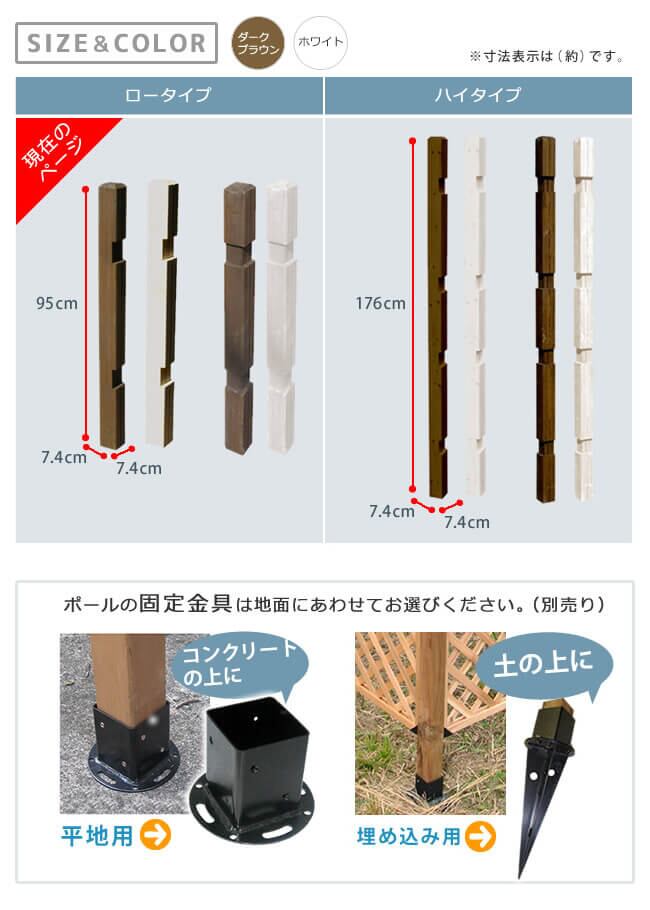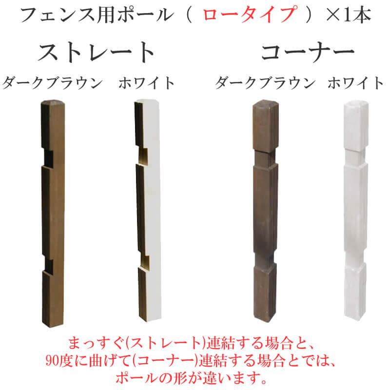 フェンス用ポール 1本 単品 ロータイプ 高さ95cm ダークブラウン ホワイト 茶色 白 ストレート連結用ポール コーナー連結用ポール 幅7.4cm 奥行7.4cm 高さ95cm 庭 ガーデニング おすすめ おしゃれ 北欧 ストレートポール コーナーポール ポール1本単品 春 夏 秋 冬
