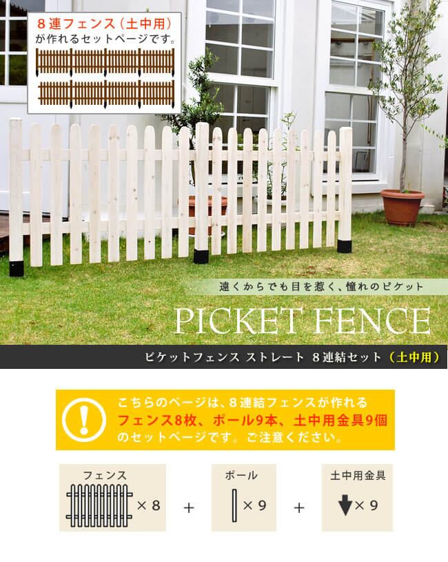 木製フェンス ストレートタイプ 土中用金具セット 土中埋め込み金具セット 8枚連結セット 8連結セット 8枚セット 土中用金具 フェンスセット ガーデンフェンス 庭のフェンス ピケットフェンス ガーデニング 庭 ピケット フェンス ストレートフェンス ホワイト ダークブラウン 白 茶色 おしゃれ おすすめ 北欧 目隠し 境界線 防犯 単品 木製フェンス 花壇のフェンス