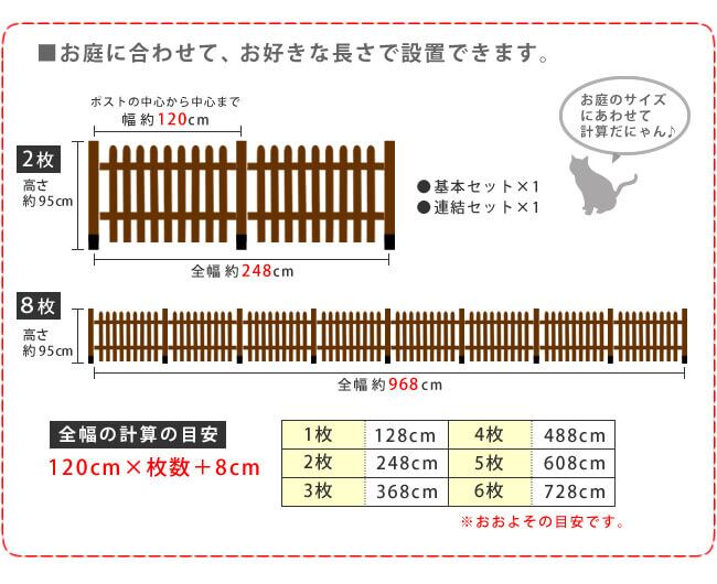 ガーデンフェンス 8連結セット 土中埋め込み金具 8枚連結フェンスセット 120cm幅 ダークブラウン ホワイト 茶色 白 ウッドフェンス 木製フェンス 庭のフェンス ピケットフェンス おすすめ 北欧 フェンス幅120.2cm 奥行2.5cm 高さ87.2cm 庭 ガーデニング 花壇 境界線 目隠し