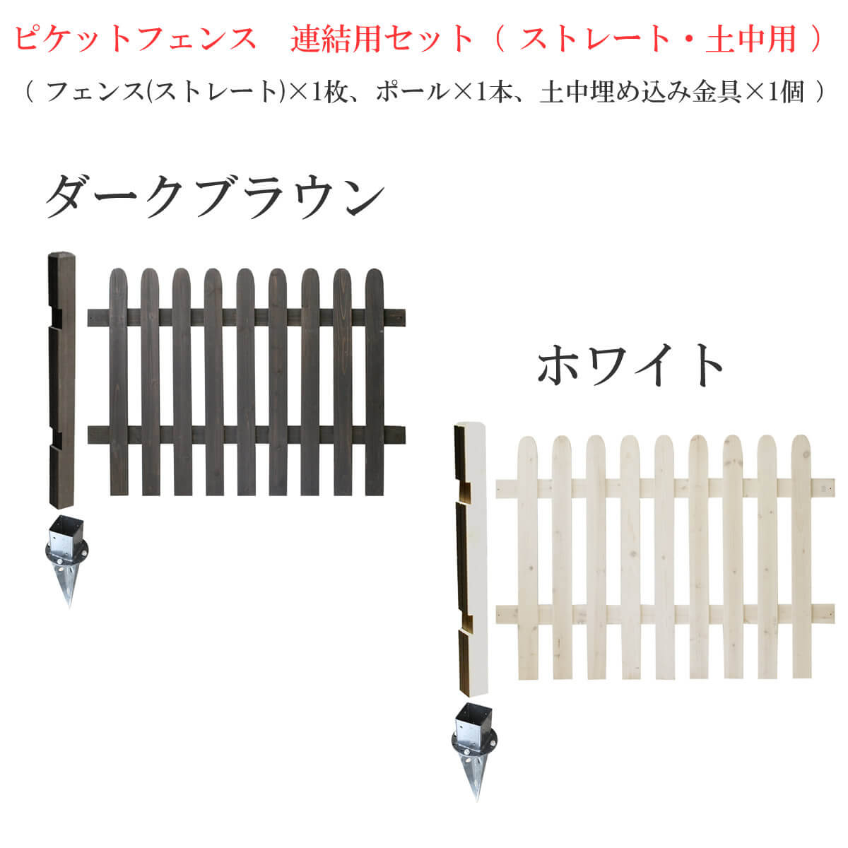 ガーデンフェンス 連結用セット フェンス1枚 土中用金具1個 連結用 120cm幅 ダークブラウン ホワイト 茶色 白 木製フェンス ウッドフェンス ピケットフェンス 庭 ガーデニング 花壇 境界線 目隠し 春 夏 秋 冬 ストレートフェンス ピケットフェンス 春 夏 秋 冬 連結セット