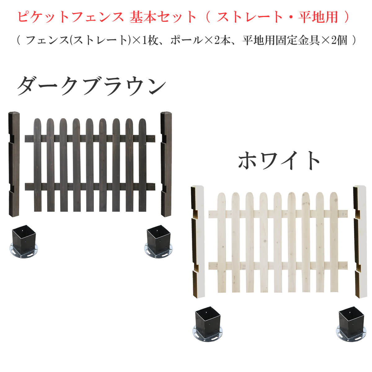木製フェンス ストレートタイプ 平地用金具セット 基本セット フェンスセット 平地用固定金具 フェンスセット ガーデンフェンス 庭のフェンス ピケットフェンス ガーデニング 庭 ピケット フェンス ストレートフェンス ホワイト ダークブラウン 白 茶色 おしゃれ おすすめ 北欧 目隠し 境界線 防犯 単品 木製フェンス 花壇のフェンス