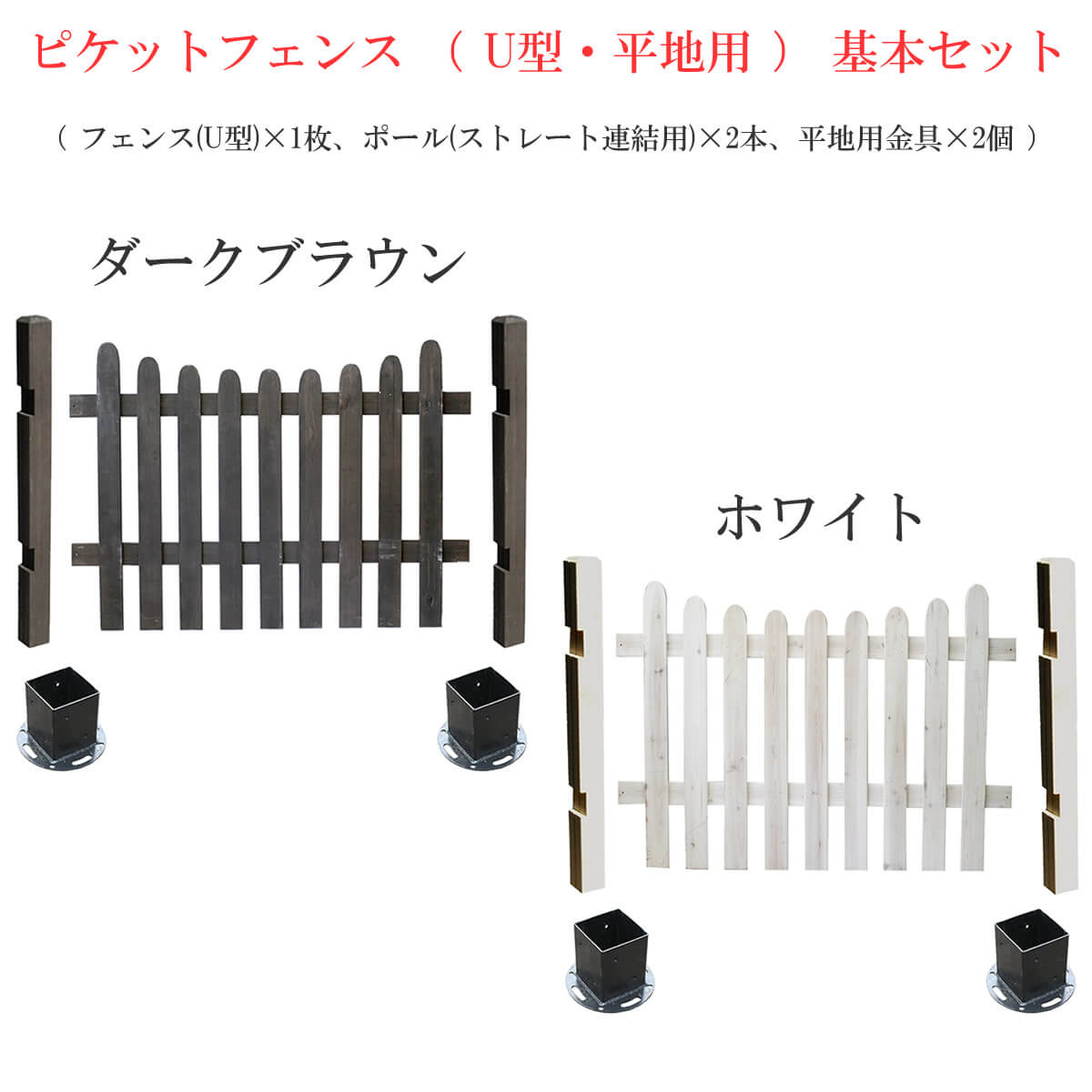 木製フェンス U型 平地用金具セット 基本セット フェンスセット 平地用固定金具 フェンスセット U型フェンス ガーデンフェンス 庭のフェンス ピケットフェンス ガーデニング 庭 ピケット フェンス ホワイト ダークブラウン 白 茶色 おしゃれ おすすめ 北欧 目隠し 境界線 防犯 単品 木製フェンス 花壇のフェンス 柵 庭の柵