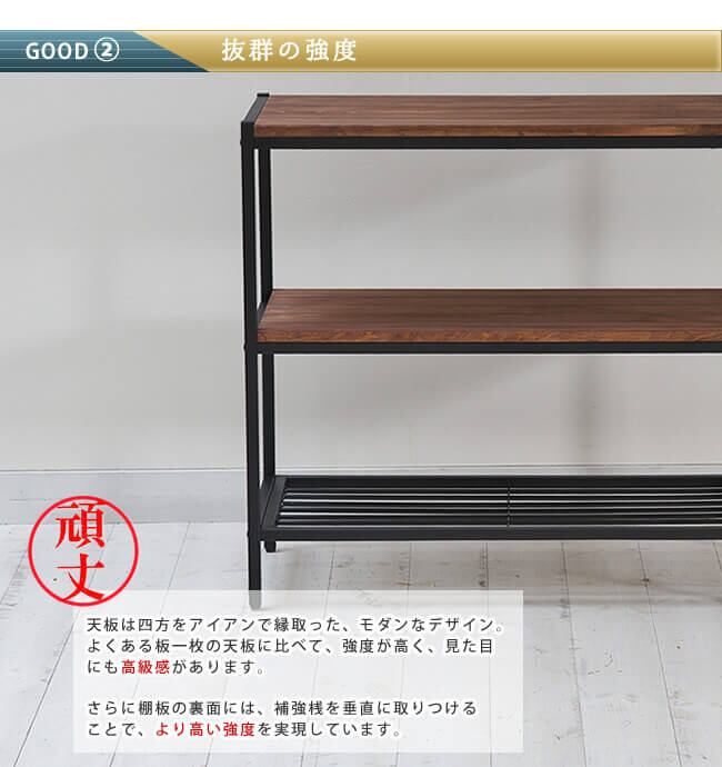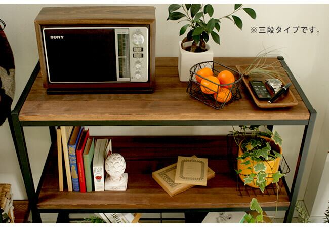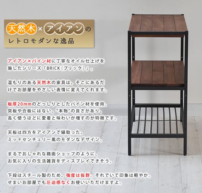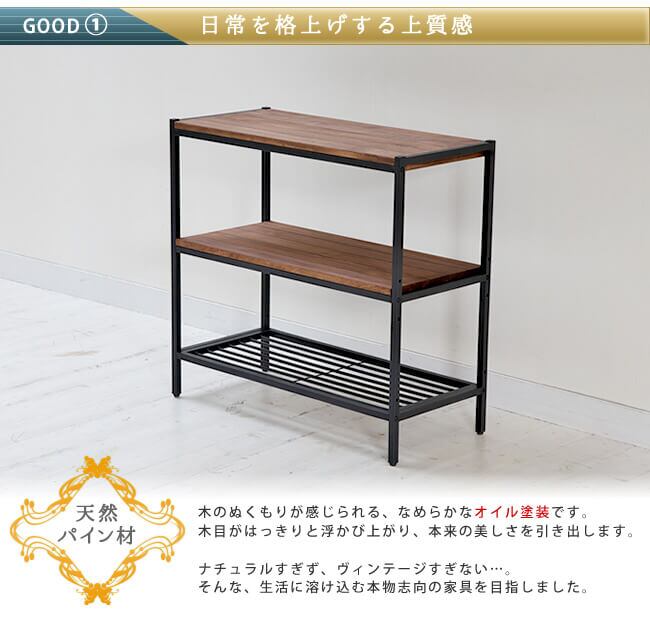 木目がはっきりと浮かび上がり、本来の美しさを引き出し、ナチュラルすぎずヴィンテージすぎない、そんな生活に溶け込む本物志向の家具を目指した3段シェルフです。