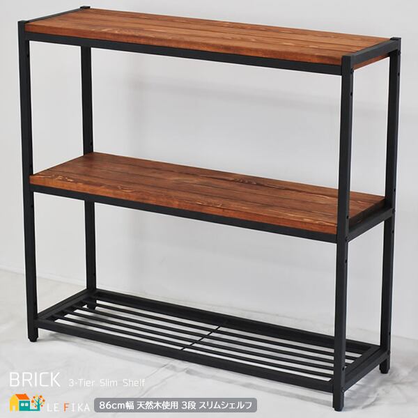 3段収納ラック スリムタイプ 86cm幅 オープンラック シェルフ ブラウン 茶色 おすすめ おしゃれ 北欧 三段ラック 収納棚 可動棚 オープンシェルフ 天然木使用 スチールフレーム 幅86cm 奥行28cm 高さ81cm 3段収納棚 春 夏 秋 冬 収納ラック 収納シェルフ 3段収納シェルフ