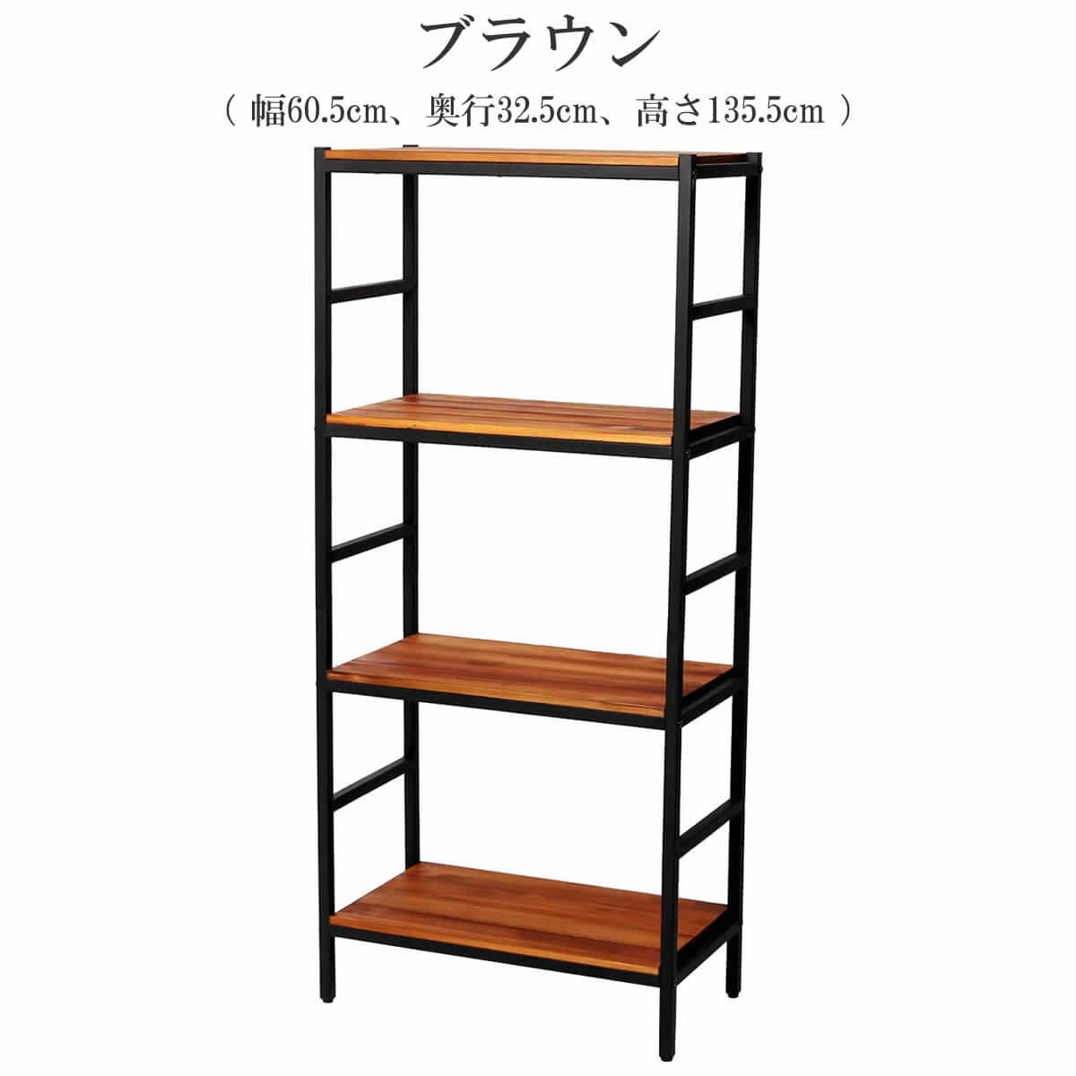 4段ラック 4段収納ラック 4段オープンラック 60.5cm幅 長方形 高さ135.5cm 収納棚 オープンシェルフ おすすめ おしゃれ 北欧 ブラウン 茶色 可動棚 棚追加可能 オープンラック 収納ラック 収納シェルフ 天然木 スチールフレーム ラック 収納シェルフ