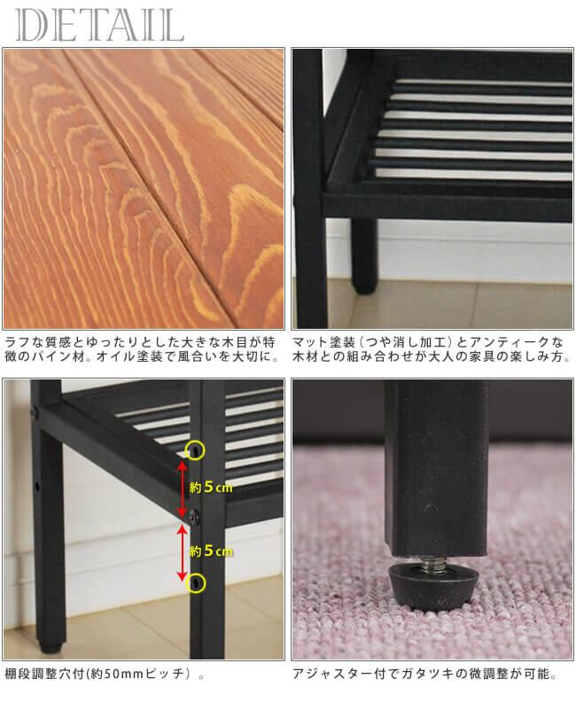 厚みのあるどっしりとしたパイン材を使用しており、突板や合板にはない「本物」の良さがあり、長く使うほどに、愛着と味わいが増すのが特徴です。