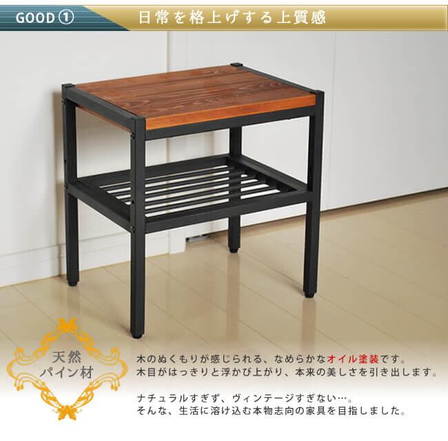 相性抜群の天然木とアイアンを組み合わせ、丁寧なオイル仕上げを施したサイドテーブルです。
