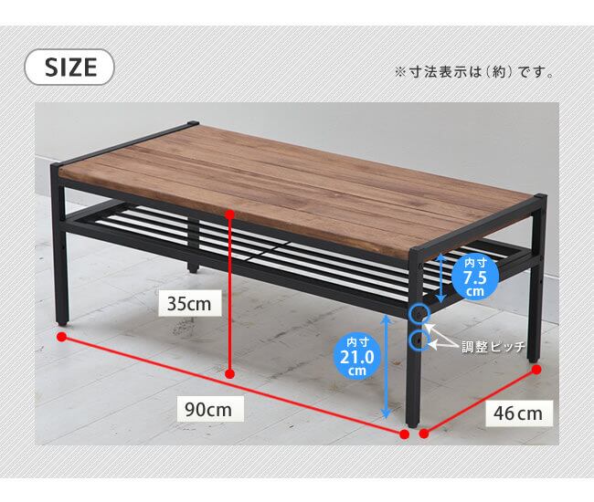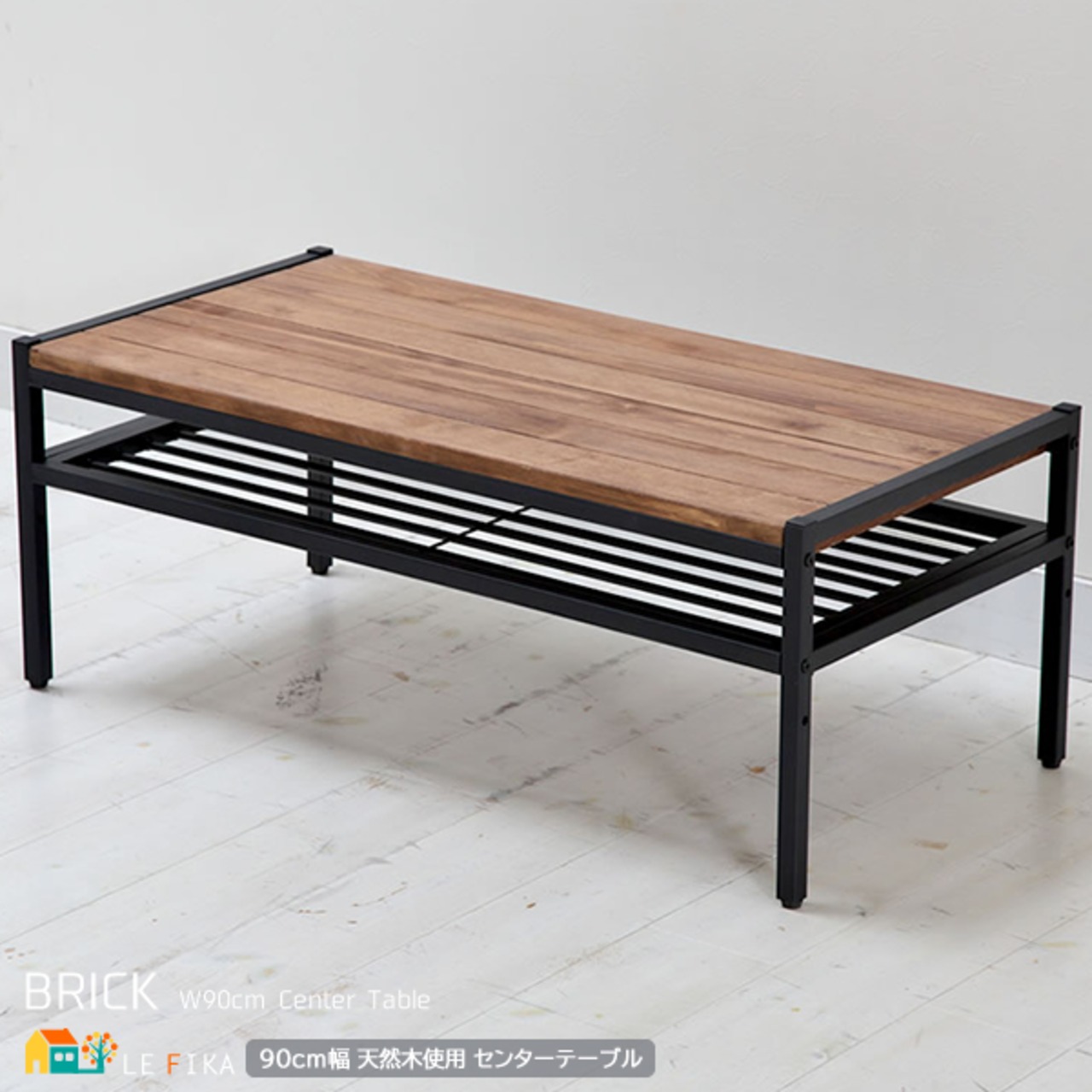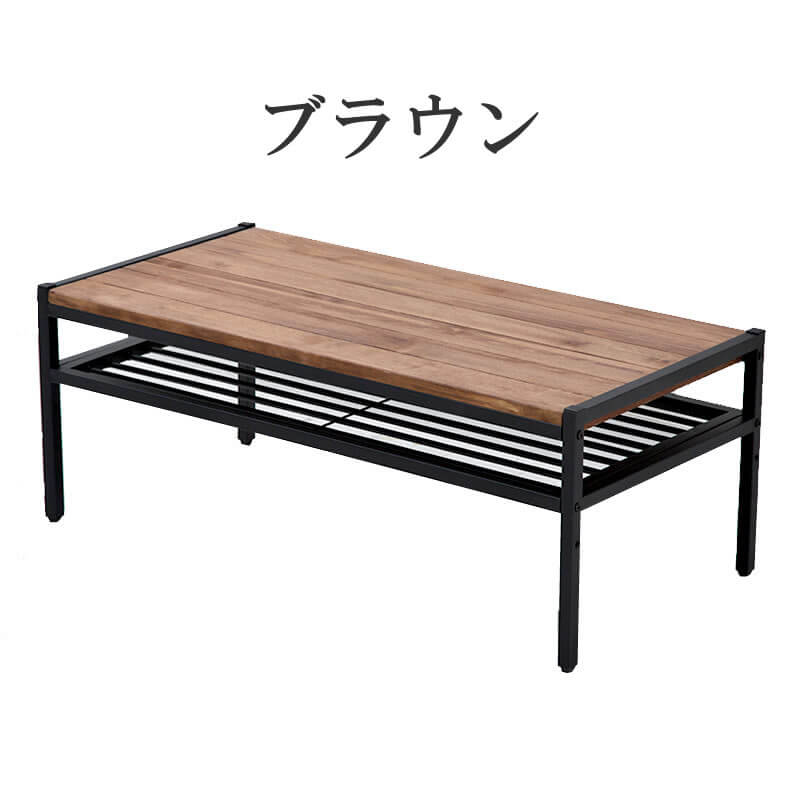センターテーブル 90cm幅 ブラウン 茶色 リビングテーブル カフェテーブル コーヒーテーブル 幅90cm 奥行46cm 高さ35cm おすすめ おしゃれ 北欧 テーブル 収納棚付きテーブル 机 天然木使用 スチールフレーム 可動棚 パイン材 収納ラック付きテーブル 春 夏 秋 冬 テーブル