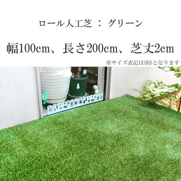 幅100cm、長さ200cm、芝丈(パイル高)2cmのロール人工芝です。