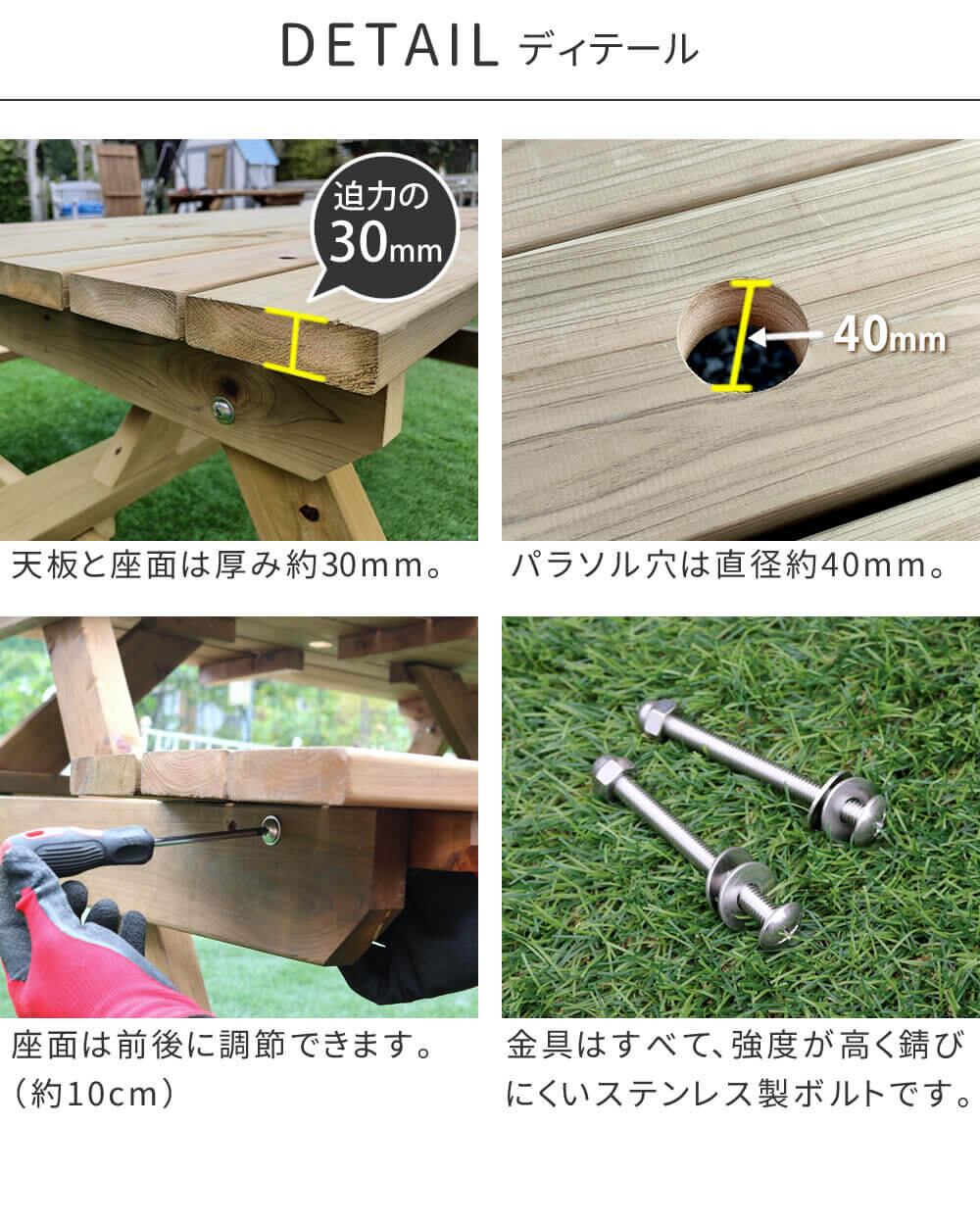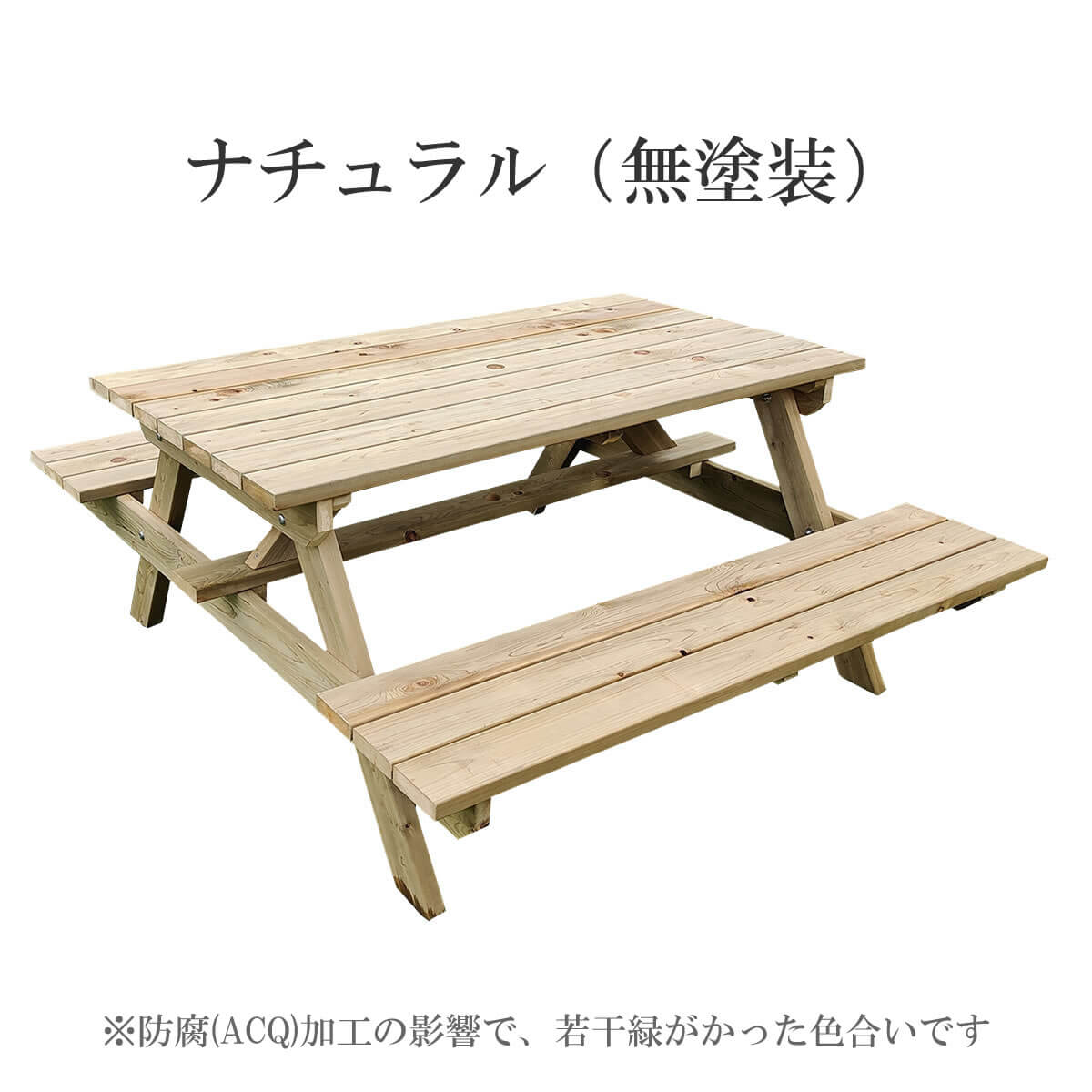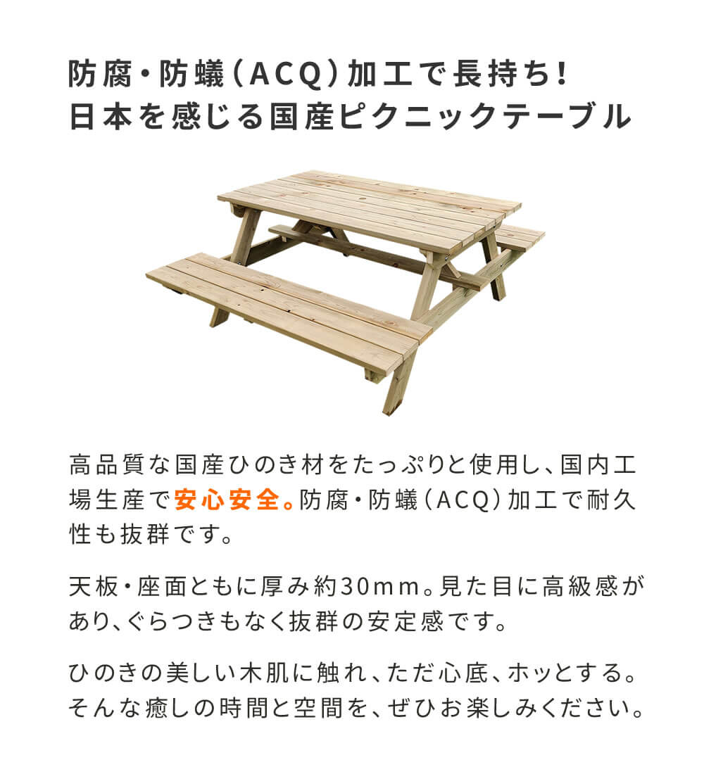 ピクニックテーブル ベンチ一体型 日本製 149cm幅 ナチュラル 無塗装 アウトドアテーブル バーベキューテーブル ガーデンテーブル 4人掛けテーブル おすすめ おしゃれ 北欧 幅149cm 奥行174.5cm 高さ70cm 天然木 国産檜材 四人用テーブル ベンチ付きテーブル 春 夏 秋 冬