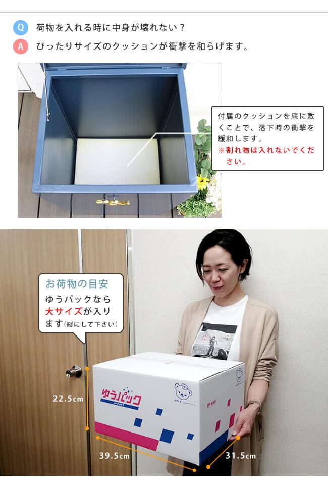 ゆうパック(大)が入る大容量サイズが魅力のおしゃれな宅配ストッカーです。