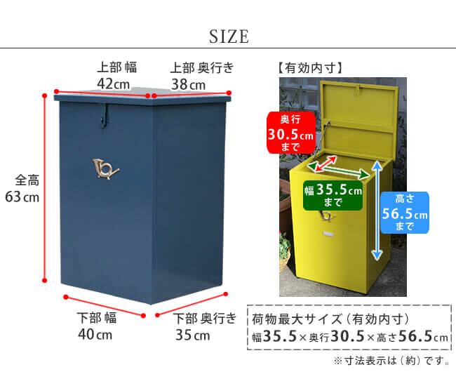 宅配ボックス ストッカー 42cm幅 グレイッシュブルー モカブラウン ダークグリーン マスタードイエロー 幅42cm 奥行38cm 高さ63cm おすすめ おしゃれ スチール製 レトロ モダン 北欧 ヨーロッパ調 マンション 戸建て 荷物受け取りボックス 鍵付き 施錠可能 春 夏 秋 冬