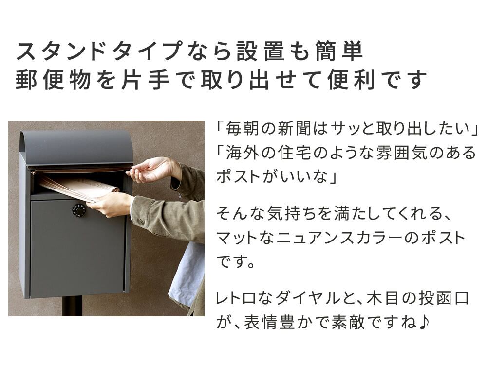 ポスト 鍵付きポスト ダイヤルロック ダイヤル錠式 施錠ポスト ダイヤルポスト 手前開きポスト スタンドポスト 手前開きポスト おすすめ おしゃれ 北欧 グレー グレージュ 郵便ポスト エクステリア 玄関ポスト 新聞受け
