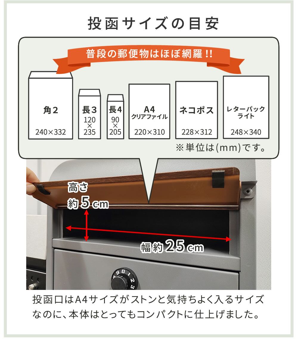 ・投函口:幅25cm、奥行5cm