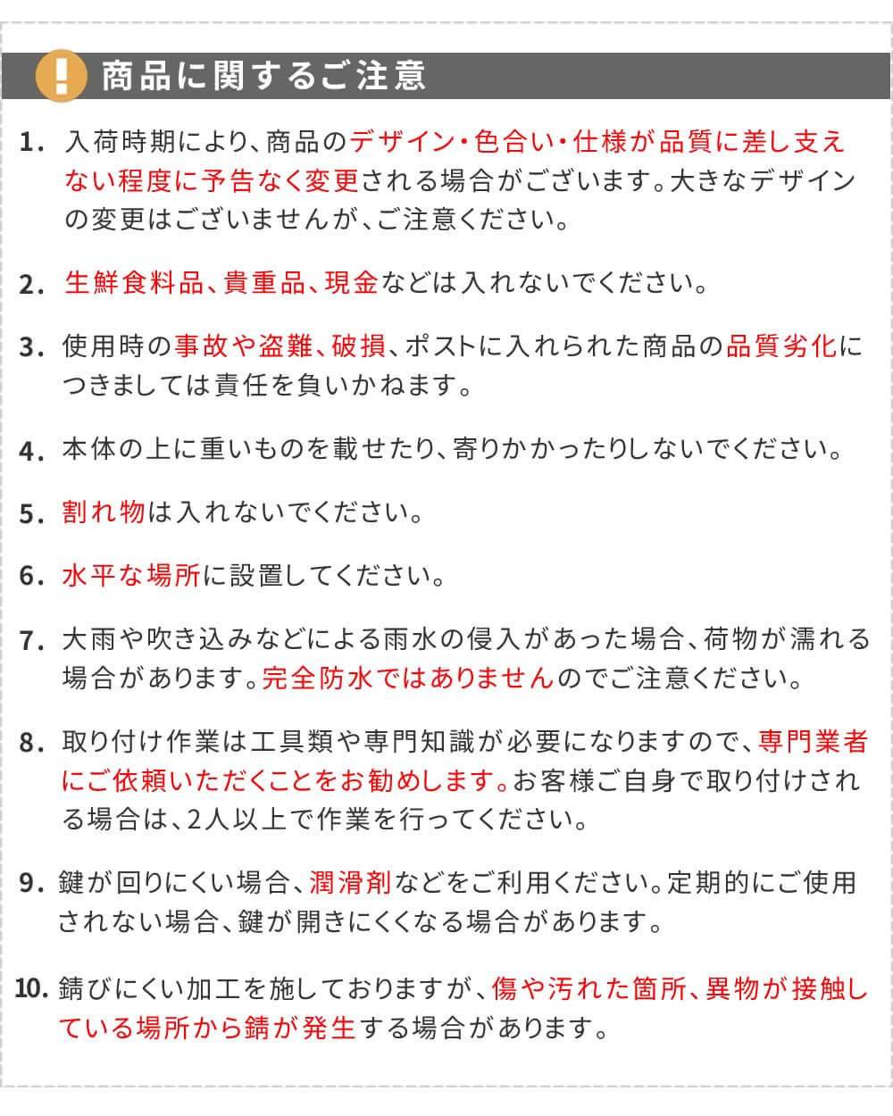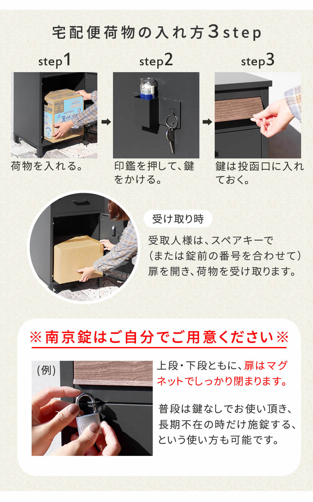 ※完全防水ではございません。※南京錠はお客様ご自身でご用意ください。