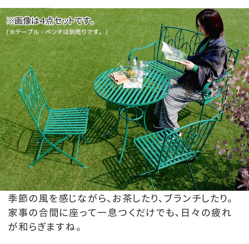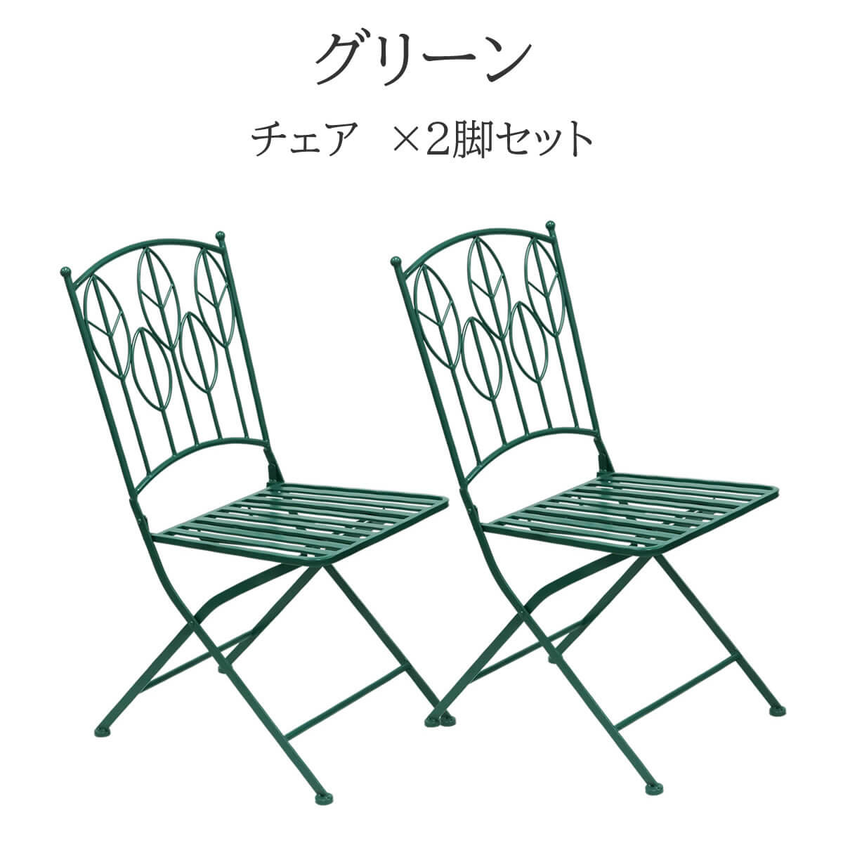 ガーデンチェア 2脚セット グリーン アイアンチェア アウトドアチェア 折り畳みチェア 庭のチェア 庭の椅子 おすすめ おしゃれ 北欧 モダン ベランダ バルコニー 庭 幅42.6cm 奥行58cm 高さ91cm 庭園 菜園 折りたたみ式椅子 コンパクト 省スペース 春 夏 秋 冬 イス チェアー
