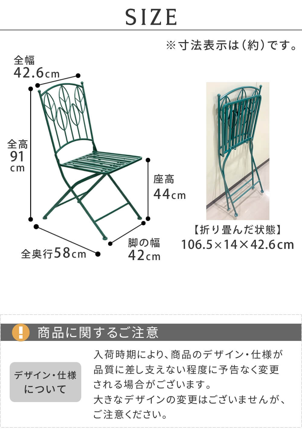 ■商品サイズ(1脚あたり)(約):幅42.6cm、奥行58cm、高さ91cm、座面高44cm