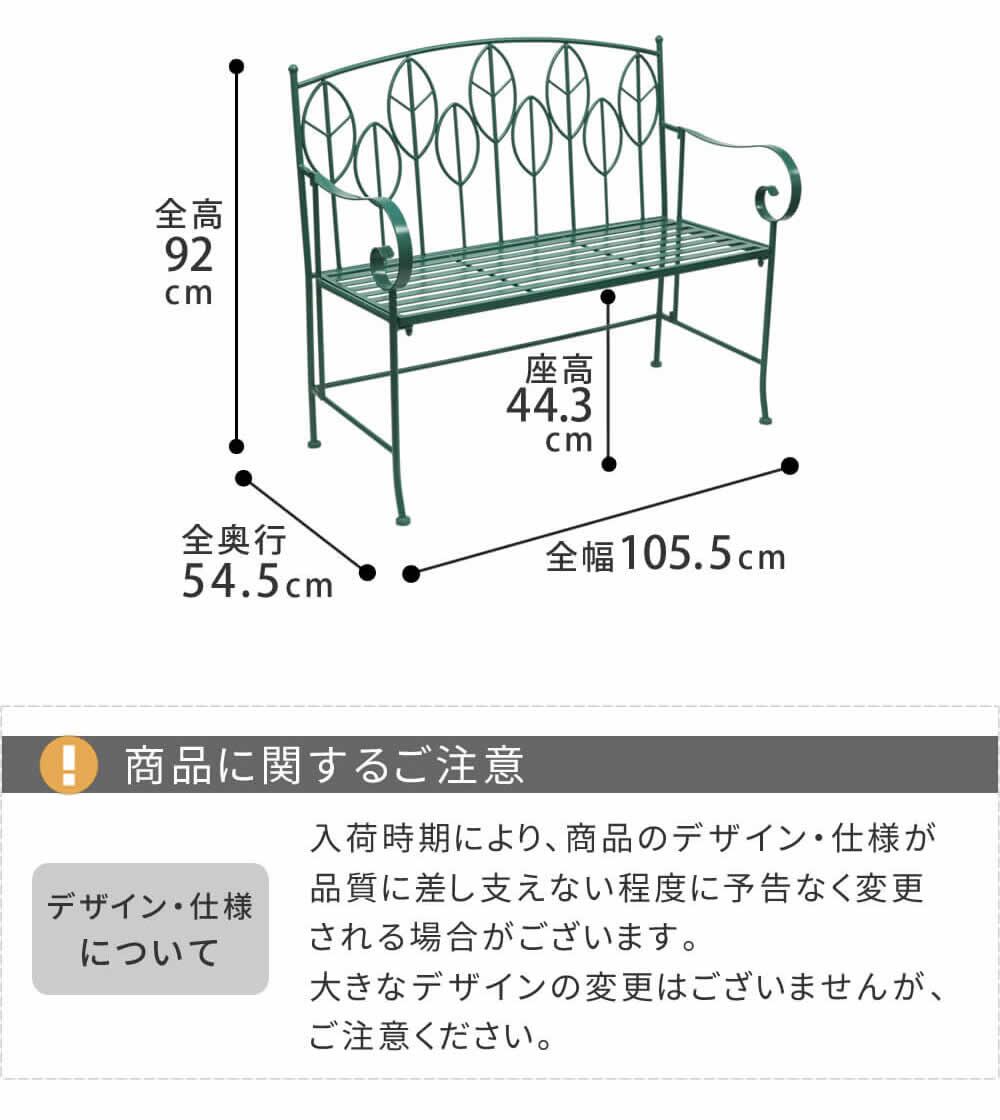 ・ベンチ:幅105.5cm、奥行54.5cm、高さ92cm、座面高44.3cm