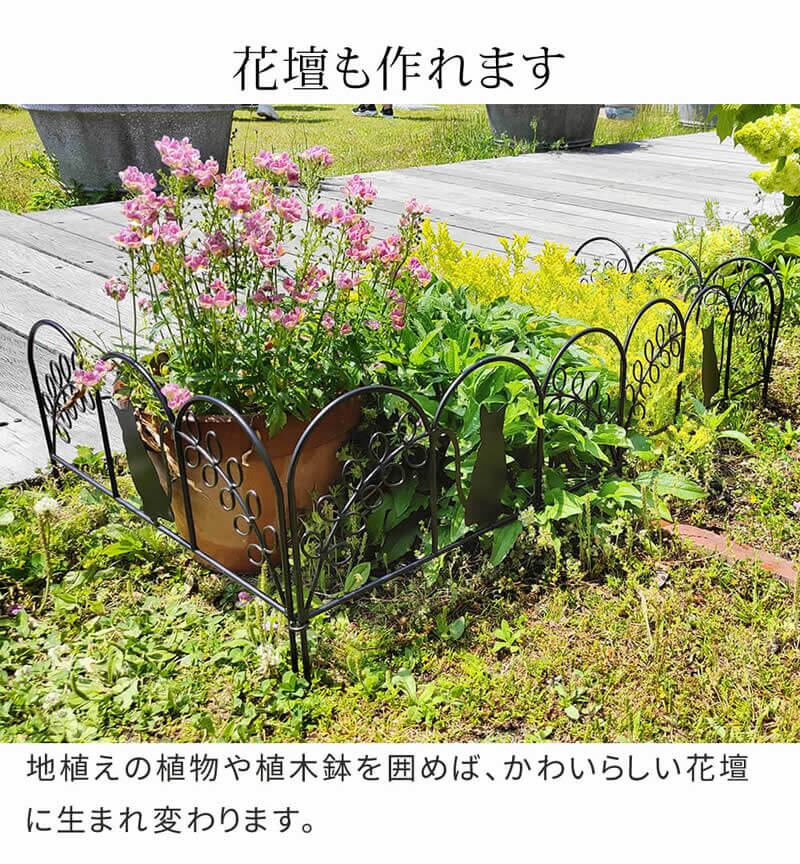 地植えの植物や植木鉢を囲むことでかわいらしい花壇をつくることも可能です。