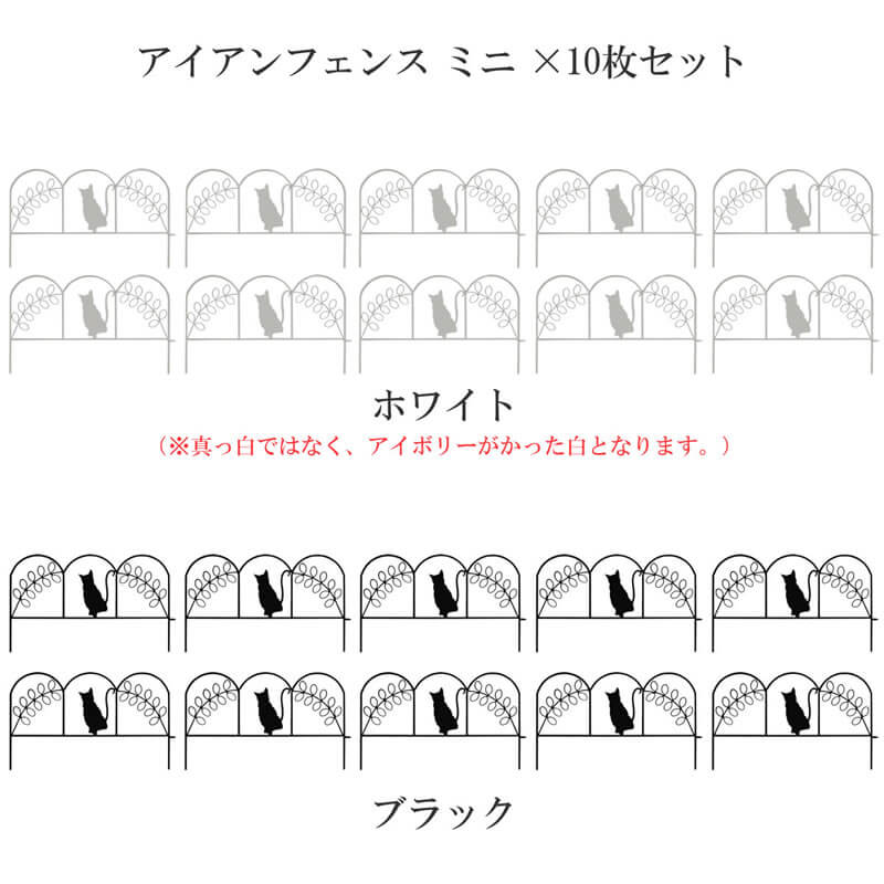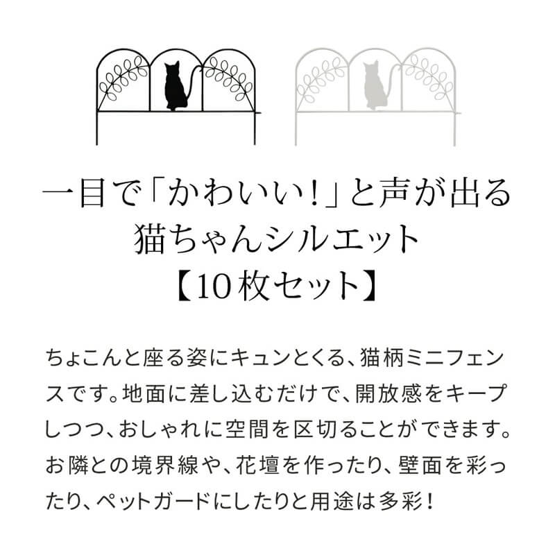 ミニフェンス ガーデンフェンス 10枚セット アイアンフェンス 同色10枚組セット 花壇の間仕切り ガーデニング 間仕切り ブラック ホワイト 黒 白 猫 猫フェンス 猫デザインフェンス 目隠し おすすめ おしゃれ 北欧 モダン スタイリッシュ 庭の境界線 庭の間仕切り 花壇のフェンス 家庭菜園 花壇 ラティス トレリス ツタ バラ モッコウバラ クレマチス ジャスミン アイビー スイカズラ ハニーサックル ツルバラ ツルハナナス トケイソウ アケビ ハツユキカズラ フウセンカズラ アサガオ ミニフェンス ミニアイアンフェンス ミニガーデンフェンス