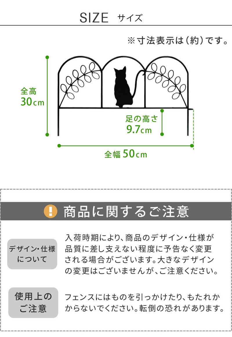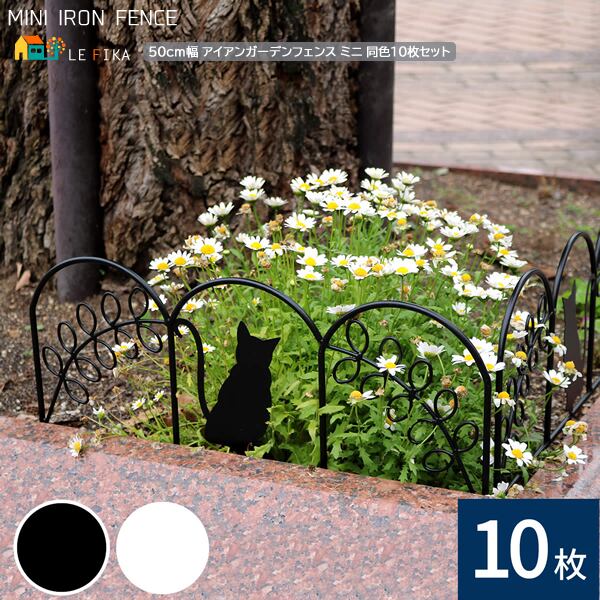 アイアンフェンス 50cm幅 10枚セット ブラック ホワイト 黒 白 ガーデンフェンス 庭のフェンス ミニフェンス 花壇のフェンス 間仕切り 全幅50cm 奥行1.8cm 高さ30cm おすすめ おしゃれ 北欧 モダン ガーデニング 庭用フェンス 花壇 家庭菜園 猫デザイン フェンス 境界線 庭