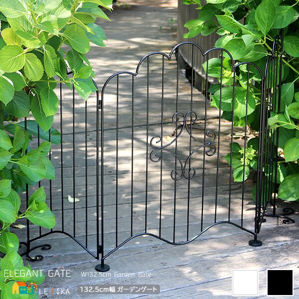 ガーデンゲート 132.5cm幅 ブラック ホワイト 黒 白 アイアンゲート フェンス 庭のゲート 折り畳み式ゲート 簡易設置 折り畳みゲート 全幅132.5cm 奥行16cm 高さ76cm 外枠線径0.7cm おすすめ おしゃれ 北欧 モダン 庭 ガーデニング 花壇 境界線 間仕切り 置き型フェンス