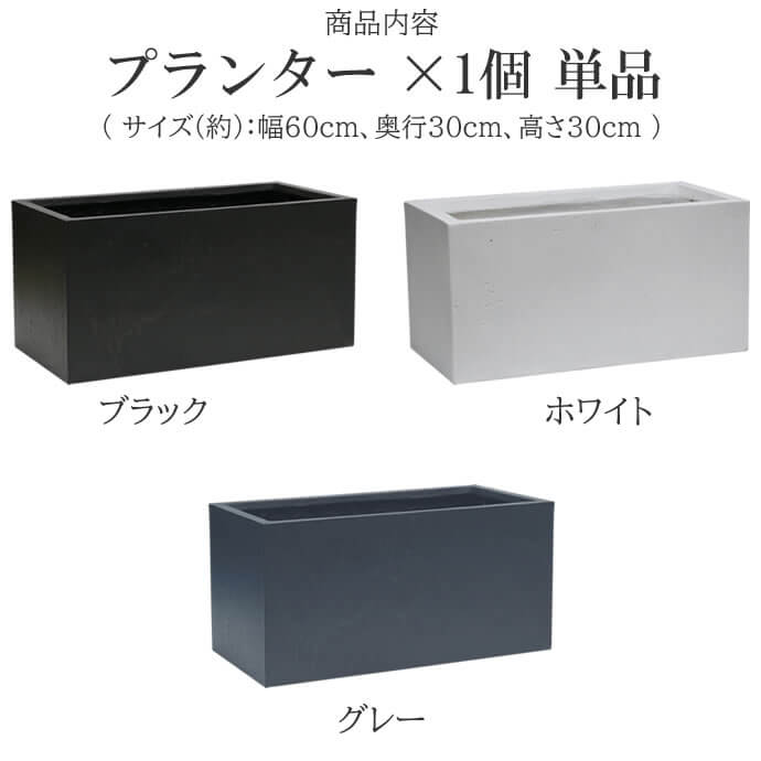 ガーデンプランター 長方形 60cm幅 グレー ブラック ホワイト 灰色 黒 白 長方形 幅60cm 奥行30cm 高さ30cm おすすめ おしゃれ 北欧 モダン コンクリート風 石調 植木鉢 鉢植え 長方形プランター 庭のプランター 水抜き穴付き マグネシアセメント 菜園 庭園 花壇 ベランダ